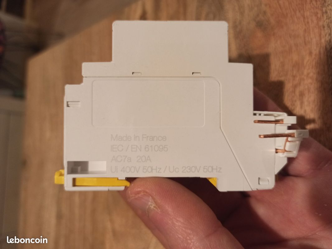 Contacteur Jour Nuit Schneider Schneider Electric SC5SHN0316736 Contacteur Ct'clic Hc 20 Ampères Contacteur 20A 2 Pôles A9C15031 - Acti9, iCT HC, contacteur silencieux à commande manuelle 1P... GV2LE10 Schneider Electric 6.3 A TeSys Motor Protection Circuit Breaker RS Repérage zone libre pour collage d'une étiquette SCHNEIDER 16736 Contacteur Schneider CT CLIC 20A Heures Creuses - Elec... connexion rapide compatible avec les disjoncteurs peignables et embrochables Un connecteur assure une liaison électrique sûre et rapide avec le disjoncteur de protection à technologie peignable, une dérivation reste possible en sortie de disjoncteur Voyant rouge allumé si la bobine est sous tension , 2 poles , 230 a 240v ca Modulaire Résidentiel, Portection des biens, Protection des personnes