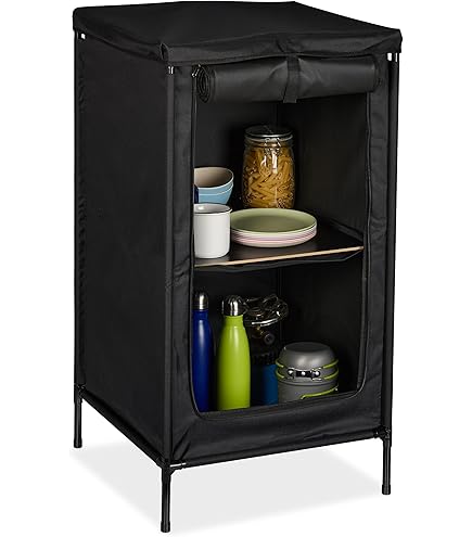 Penderie pliante Isabella - 220 Armario de camping Wecamp Modus gris - Berger Camping - Accesorios de... Rangement Vêtements Extérieur Pliable Ferrino Super Quick Schrank Garderobe Faltbar Für Camping Rangement Tente Camping étagères Armoire pliable portable avec compartiments et barres de fer, pour protéger les vêtements et les chaussures pour cave, chambre à coucher, camping, en tissu non tissé et barres de fer, montage facile Dimensions fermé : 107 x 18 x 20 cm , Charge maximale : 30 kg En acier Diamètre 16 mm – Plans en PE., Polyester 600d., Charge max., 30 kg.
