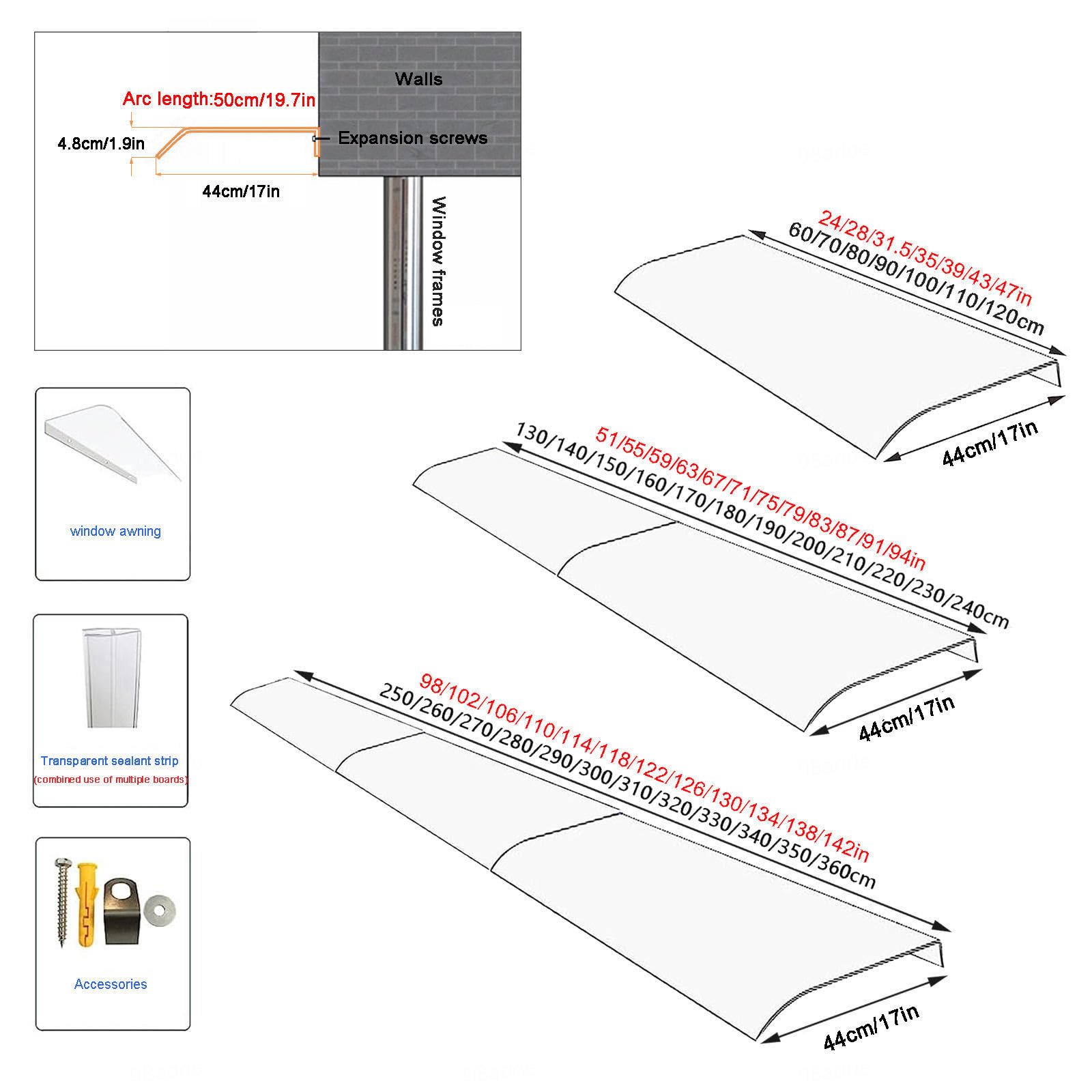 Taille 200x44 Cm Schulte Auvent Style Plus - Marquise De Porte D'entrée En Polycarbonate Transparent - 200 X 90 Cm Installation Facile Murale DIY KDDEON Auvent Voûté de Porte et Fenêtres,Auvent de Porte d'Entrée... Relaxdays Auvent de porte d'entrée en plastique, aluminium, auvent en Matériau PC Durable – Fabriqué en polycarbonate massif de 3 mm, résistant aux chocs et aux intempéries, capable de supporter des conditions extérieures extrêmes sans se déformer DOOLETTI - arquise De Porte Exterieur - Auvent Porte d'entrée 120c x... Couverture Polyvalente – Idéale pour abriter portes d’entrée, terrasses, balcons et fenêtres, ainsi que les équipements extérieurs contre la pluie, le soleil et la neige Protection Toutes Saisons – Protège efficacement les portes, fenêtres et espaces extérieurs de la pluie et de la neige, tout en bloquant les rayons UV nocifs. Design Moderne Sans Cadre – Sans support, transparent et presque invisible, léger mais robuste, s’installe à ras du mur et s’adapte à tout style architectural, qu’il soit moderne, vintage ou rustique Jours de pluie ? Fenêtres ouvertes — Avec notre auvent de porte et de fenêtre, la pluie, la neige et le soleil ne sont plus un problèmeTailles multiples : Largeur : 20 cm–500 cm, Profondeur : 35 cm / 45 cmRépond à vos besoins d’espaceAvantages de l’auvent sans cadre :& Élégant et stylé& Solide et durable& Léger, facile à fixer au mur& Design élégant sans support& Résistant aux chocs& Résistant aux basses/hautes températures (-40 °C à 120 °C)& Ignifuge& Réduction du bruit& Facile à installerMatériau : panneau en polycarbonateForme : arcCouleur : Transparent / OpaqueTaille : Largeur x Profondeur, personnalisableProtection UV : 99 %Résistance au vent : niveau 12Ignifuge : 100 %Inclus : Panneaux d’auvent Accessoires completsAvant l’achat :Veuillez lire attentivement les données de taille avant d’acheter