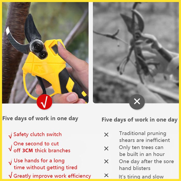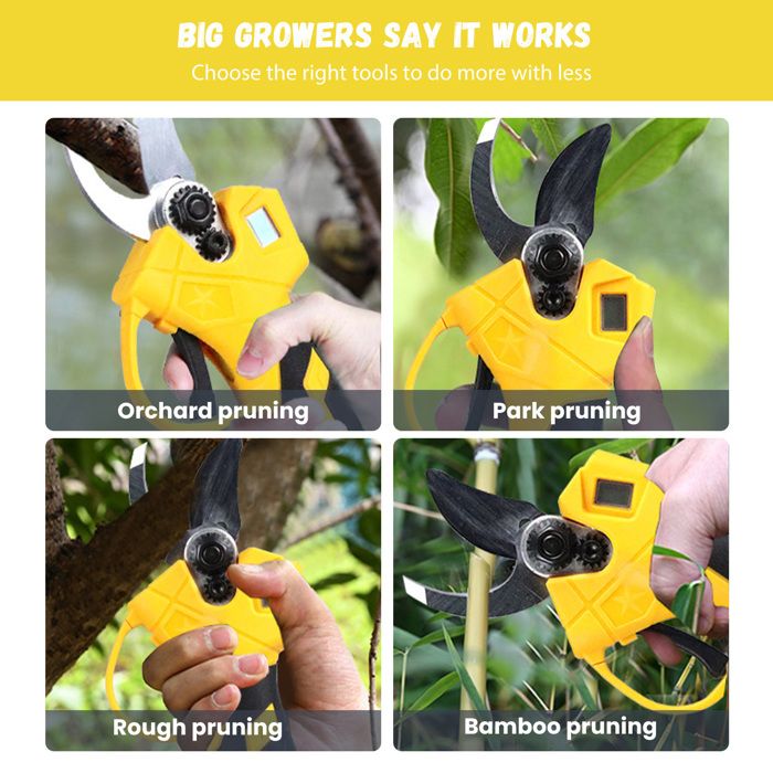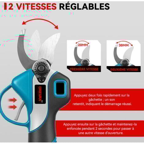 Utilisé comme sécateur avec batterie, petit sécateur électrique, jardin câlin ou sécateur électrique. Sécateur Pro Arbres Fruitiers Sécateur électrique Sans Fil,30mm Secateur Electrique Professionnel,convient Pour La Batterie Sécateur à Batterie Le sécateur sans fil prend en compte le confort des mains de l'utilisateur, en caoutchouc, antidérapant, doux, et pas facile à ressentir la fatigue après une longue période d'utilisation. Sécateur à batterie, sécateur électrique, diamètre de coupe 30 mm, avec 2 batteries, sécateur, sécateur ️[Moteur sans balais puissant] Les sécateurs électriques sans fil professionnels utilisent un moteur sans balais, qui offre 50 % de temps de fonctionnement en plus, augmente l'efficacité de coupe de 30 % pour éviter d'endommager le moteur. ️[Lame tranchante et diamètre de... Ce sécateur électrique présente d'excellentes performances et ses performances sont considérablement améliorées. Sécateur électrique sans fil 2 à 3 fois plus efficace que les sécateurs électriques traditionnels. Lame SK7 tranchante, écran LCD pour suivre la batterie et le nombre de coupes. Livré avec 2 batteries 2.0Ah (4-8h d'autonomie) et une pierre à aiguiser. Parfait... Grâce à la conception étanche du sécateur, vous pouvez travailler à l'extérieur même les jours de pluie Pour basculer entre les différents modes de taille (15 ou 30 mm), il suffit de maintenir la gâchette enfoncée pendant 3 secondes. Il est largement utilisé dans les jardins, les parcs, les fermes, les grands pâturages, les vergers ou les serres. Outil Jardinage Sans Fil Sécateur Électrique TEENO 30mm - Sans Fil Brushless - 2 Batteries 2000mAh - LCD Sécateur électrique Avec écran Lorsque vous n'utilisez pas l'appareil, maintenez le déclencheur enfoncé pendant 5 secondes jusqu'à ce que vous entendiez trois « bip bip bip » et fermez automatiquement Nos branches électriques et nos coupes peuvent fournir une coupe précise, ce qui est un cadeau parfait pour les hommes, les pères, les jardiniers professionnels et les amateurs d'horticulture.