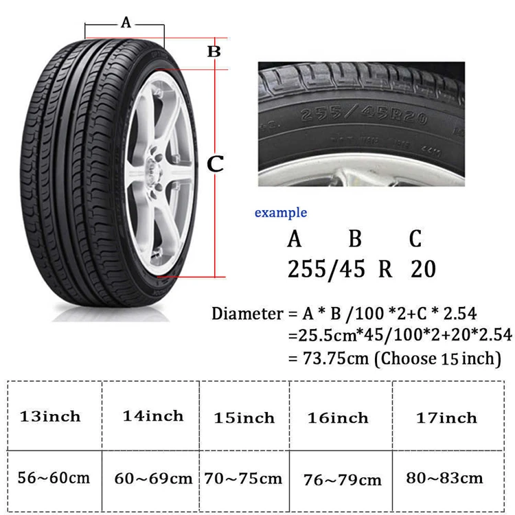 Nous vous répondrons dans les 24 heures et vous offrirons le meilleur service. Bouclier Pour Suzuki Jimny Couverture De Pneu De Secours De Voiture, Pour Mitsubishi Outlander Accessoire Pour Suzuki Jimny L’utilisation d’une protection préservera l’aspect neuf de votre housse pendant des années., 4., Installation facile sans outils. VOITURE HOUSSE POUR Suzuki Jimny en Beige Pilot 1.3 EUR 150,25... 【Protection】Protège vos pneus des rayures, des chocs, des dommages causés par le soleil, les fientes d'oiseaux, la rouille et la saleté. 【Installation facile】Aucun outil requis. Housse de roue de secours pour Halloween, étanche, anti-poussière et... Protège efficacement votre roue de secours contre la pluie, la neige, le vent, la poussière, le soleil et les intempéries. Bande élastique pour un ajustement rapide et ajustable. Housses à enfiler sans fermeture éclair. Housse de Roue de Secours, pour Suzuki Jimny JB64 JB74 2018-2020, Housse de Protection de Pneu arrière en ABS 【Comment calculer le diamètre d'un pneu de voiture】Votre pneu est noté P215/70R16, A = 215 B = 70 C = 16Diamètre de votre pneu = A x B/500 + C x 2,54 = 215 x 70/500 + 16 x 2,54 = 70,74 cmTaille (13 pouces) : diamètre 55-58 cm (22-23 pouces)Taille (14 pouces) : diamètre 60-69 cm (24-27 pouces)Taille (15 pouces) : diamètre 70-75 cm (28-29 pouces)Taille (16 pouces) : diamètre 76-79 cm (30-31 pouces)Taille (17 pouces) : diamètre 80-83 cm (32 pouces)Taille (18 pouces) : diamètre 82-84 cm (33 pouces)Vous devez Achetez un pneu de 15 pouces. Ourlet élastique pour un ajustement rapide.