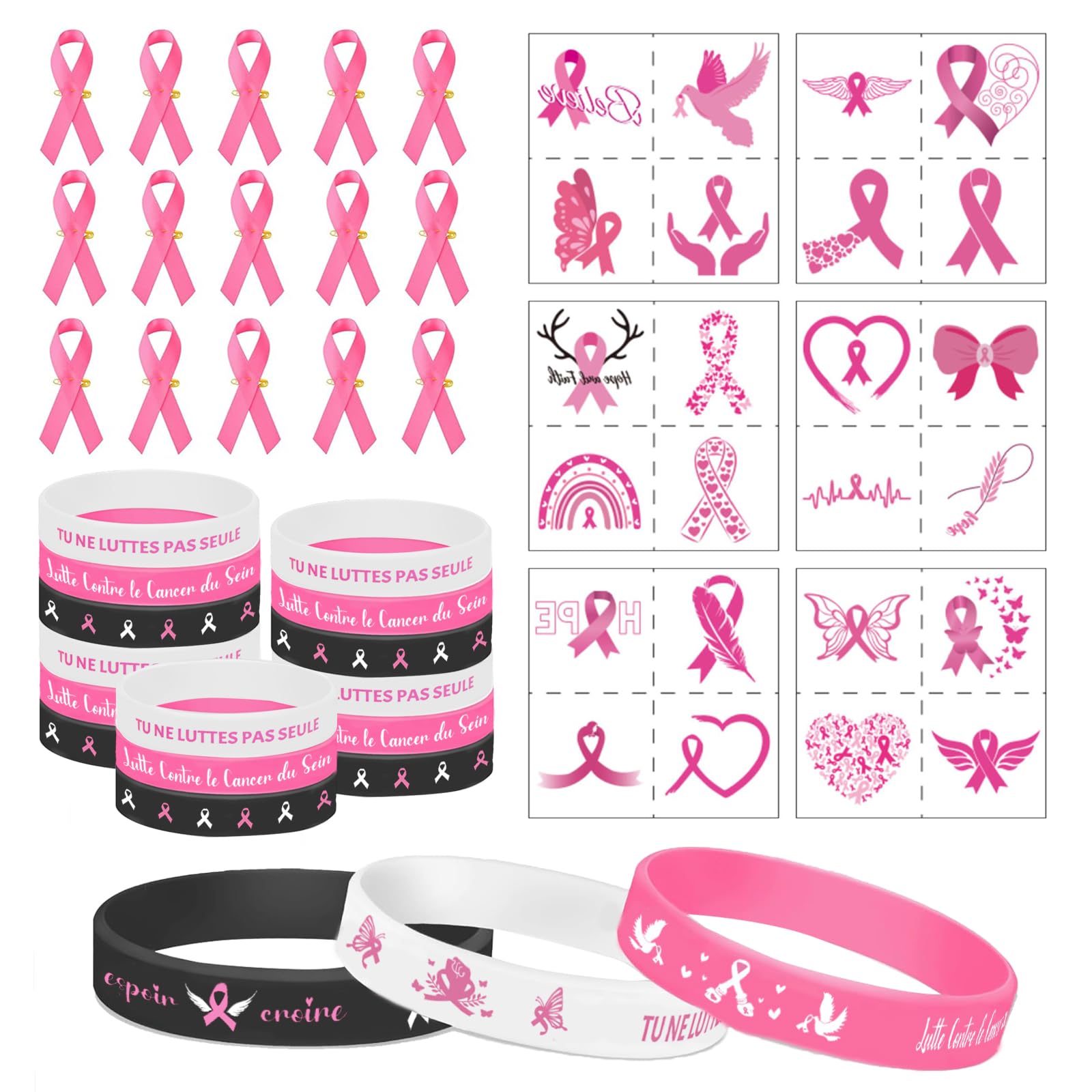 Ruban Rose (Black, 9x9x3cm Rosa Schleife Brustkrebs Octobre rose : mois de la campagne de sensibilisation contre le cancer de sein. u2013 HPGR-BUKAVU... Octobre rose Accessoires pour cadeaux :cet ensemble de bracelets à ruban rose convient aux accessoires pour les événements de sensibilisation au cancer du sein, aux cadeaux pour le ruban rose, aux sacs de fête pour le ruban rose, aux fournitures pour le ruban rose, aux accessoires pour les costumes pour le ruban rose. Publicité positive :Nos bracelets Octobre Rose contre le cancer du sein sont imprimés avec des citations positives et de beaux graphiques“Hope Believe”,“You Don't Fight Alone”,“Fight Breast Cancer”, des rubans roses, des colombes, des fleurs, des gants de boxe, des cœurs, des ailes et sont pleins de chaleur et de force. Bracelet Silicone Octobre Rose Cancer Du Sein Ruban Cadeau' Autocollant Bracelets Silicone Cancer Sein Matériaux de qualité :Nos bracelets de sensibilisation au cancer du sein d'octobre rose sont fabriqués en silicone de haute qualité, flexible et stable, extensible, convenant à la plupart des gens, facile à porter, confortable au toucher, ne raye pas la peau, ne tombe pas facilement. Soutenez la cause du cancer du sein en offrant un bracelet silicone personnalisé Octobre Rose. Idéal pour vos événements solidaires, challenges sportifs, actions en entreprise ou campagnes associatives. Confortables, résistants et visibles, ces bracelets véhiculent un message fort Contenu du paquet :Vous recevrez 15 pcs Octobre Rose Bracelets en Silicone,dans 3 styles différents (mesure environ 6,5 cm de diamètre, 1,2 cm de largeur et 20 cm de circonférence),Suffisamment pour vous, votre famille et vos amis pour les fêtes de bien-être public, les événements caritatifs ou les événements quotidiens. Nos top 10 des Cancer Du Sein Bracelet en France - Décembre