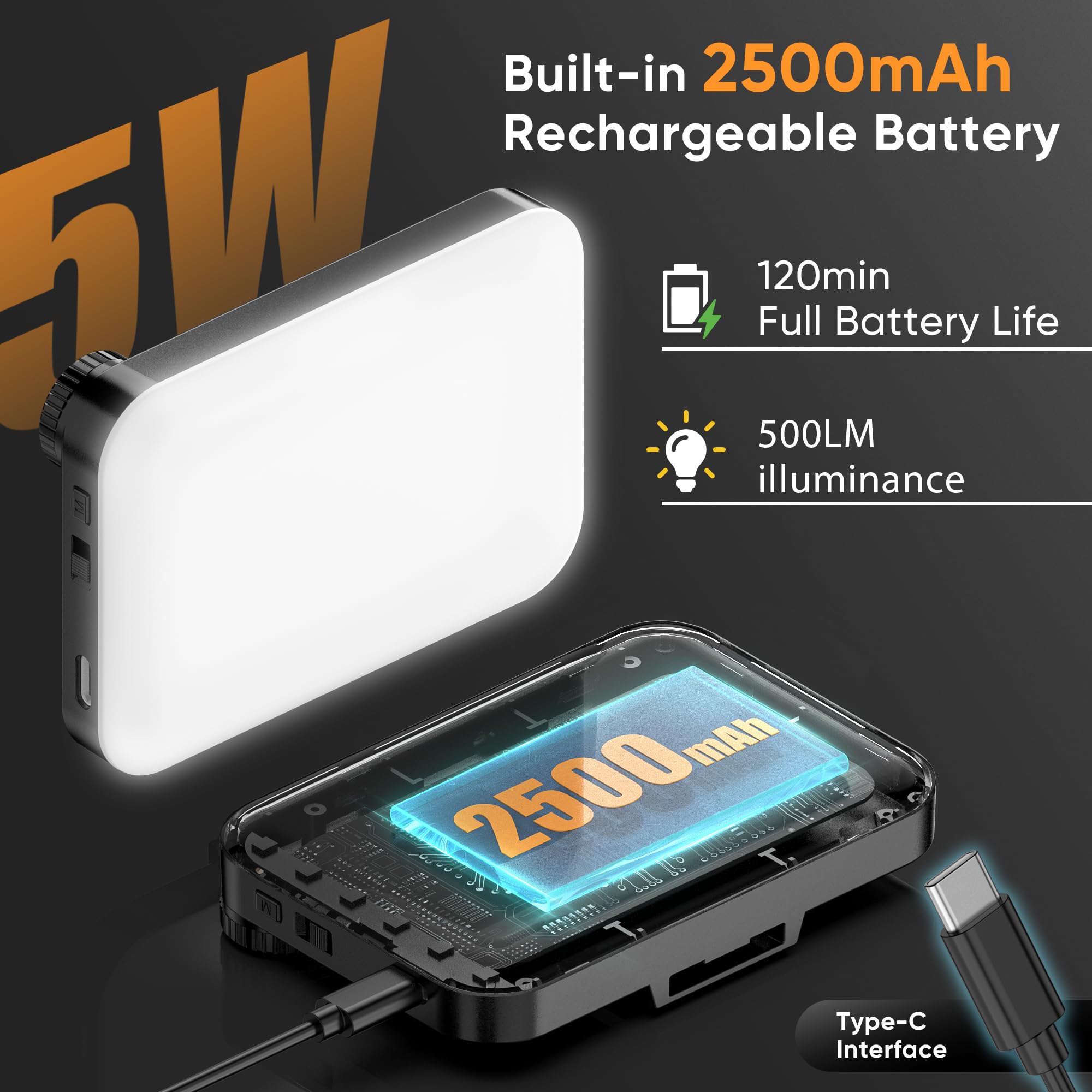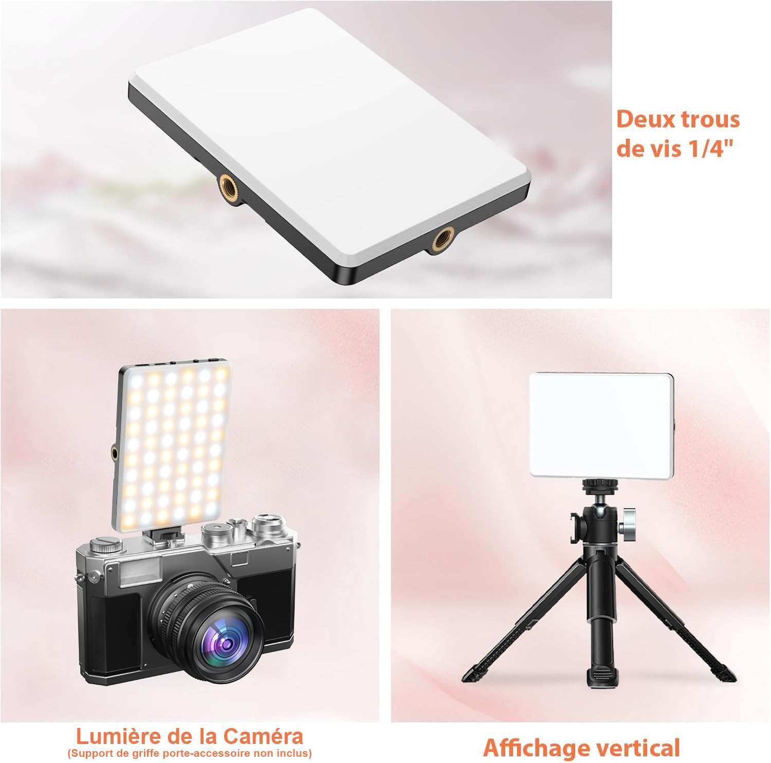 Lampe vidéo LED RVB 5 W pour streaming en direct YouTube Tiktok, 2800 K-6800 K à intensité variable, télécommande par application, batterie intégrée de 2000 mAh (jaune Lampe ICR 95 Température Variable Lampe à Selfie 2500 MAh à Clipser, 5 W Portable à Intensité Variable Luminaire TikTok Vlog EXTENSILO Batterie compatible avec DeltaFox Grizzly 2040, 2020... Plus lumineuse et plus puissante : la lampe à selfie BDDFOTO offre une puissance réelle de 5 W et 500 lumens, plus lumineuse que de nombreuses lampes traditionnelles de 4 W Sortie 5 W plus lumineuse : plus forte que de nombreux modèles de 4 W, offrant jusqu'à 500 lumens pour un éclairage clair et vibrant dans n'importe quel... Utilisation polyvalente : idéale pour les visioconférences, les tutoriels de maquillage ou les diffusions en direct sur TikTok, pour un éclairage toujours parfait Luminosité et couleur réglables : intensité variable en continu de 10 % à 100 %, avec IRC ≥ 95 pour un rendu naturel des couleurs et 3 températures de couleur (3000 K, 4500 K, 6500 K)