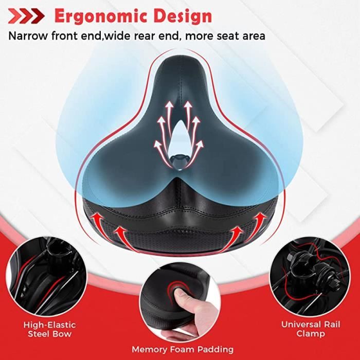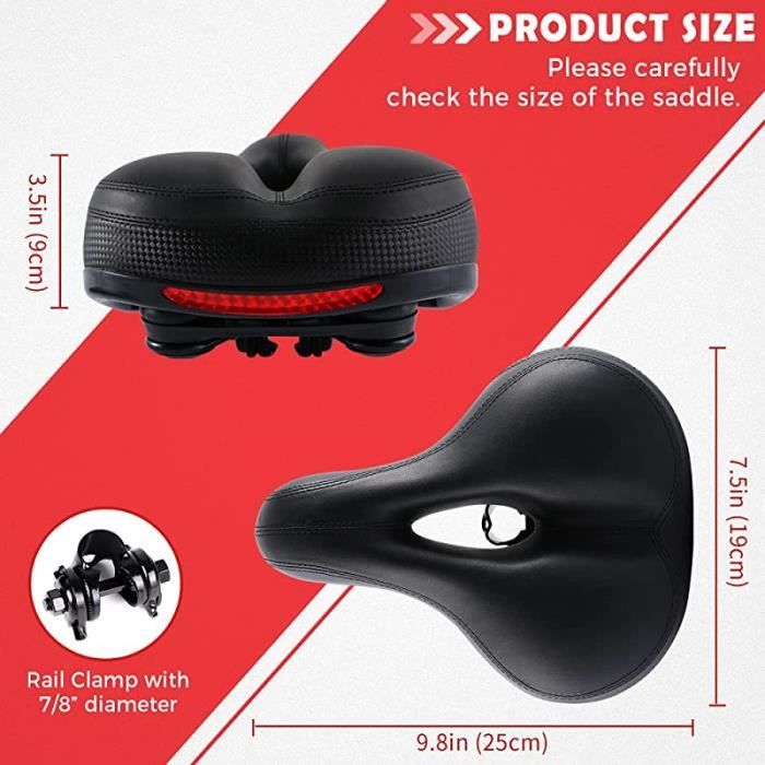 Siège large : avec une largeur de 14 cm, cette selle de vélo offre un confort d'assise élevé pour les longs trajets. Cela vous rend visible aux autres usagers de la route et rend vos aventures nocturnes plus sûres et plus agréables. Accessoire Cyclisme Urbain Longue Distance Selle Velo Confortable, Selle Vélo Ergonomique Avec Boule D'Amortisseur Pour VTT Gravel Vélo électrique Selle Velo Confortable, Selle Vélo Ergonomique Avec Boule D'Amortisseur... Fabriqué en cuir synthétique de haute qualité, ce coussin d'assise résiste aux intempéries. Description du produit Selle de vélo ergonomique Il est facile à assembler et à démonter et est une option polyvalente pour basculer facilement entre les vélos. Ergonomique : le contour suit la forme naturelle de l'os du siège pour permettre une assise assise sans sensation d'engourdissement. Compatible avec plusieurs types de vélos Ce modèle combine un design décontracté et confortable avec d'excellentes fonctionnalités, idéal pour tous les cyclistes occasionnels et urbains. Respirant : la surface perforée maintient la peau sèche et le climat sous la selle est confortable. Le coussin de vélo cocolumen est l'accessoire parfait pour chaque cycliste. Selle - tige de selle,Selle de vélo de route Extra-Large,respirante et... Il allie style, confort et fonctionnalité. Absorption des chocs : la suspension intégrée amortit les irrégularités du terrain, ne secoue pas. 1 Pipe à vent 2 Banque de mémoire 3 Schock coussinets Selle - tige de selle,Selle de vélo en cuir souple et respirante