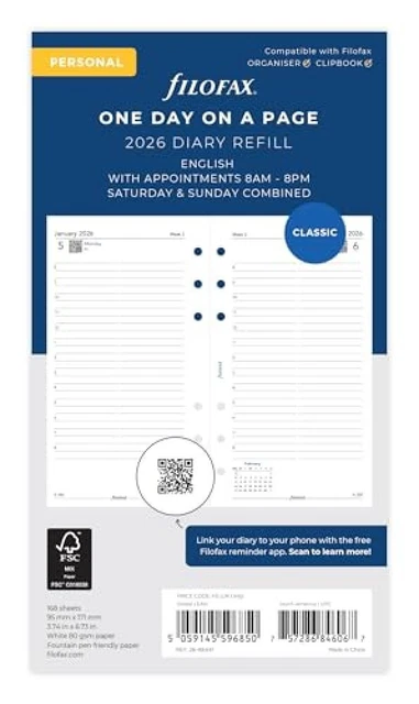 Agenda Seainier 2026: Planificateur hebdoadaire et ensuel | A4... Format semaine par page Dimensions du papier : 95 x 171 mm Agenda Papier Crème Coton Filofax Agenda 2026 Semainier 2026 En 5 Langues 26-68427 Agenda A5 Filofax Recharge pour agenda personnel 2026 AGENDA JOURNALIER Jan 2026 - Déc 2026: Couvre 12 mois (21,5 x 14,5 cm),1 Page Par Jour, offrant un espace de planification quotidienne spacieux avec des horaires pour vos rendez-vous, ce qui rend vos routines quotidiennes chargées plus organisées La semaine commence un lundi et va de janvier à décembre 2026., Dimensions du papier : 95 x 171 mm, percé avec six trous ronds. Kugelschreiber & Schreibwaren Kastner & Öhler