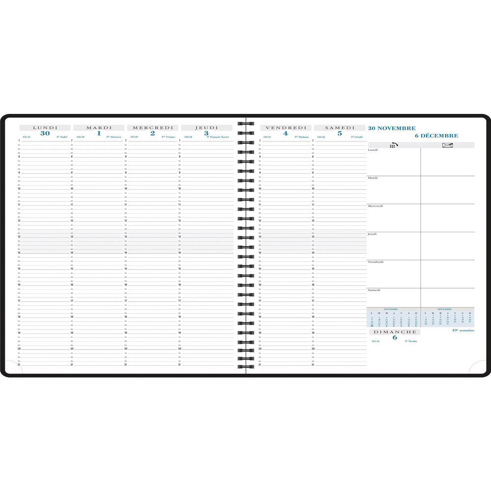 Agenda semainier 2023 à spirales A5 - Agenda semainier à anneaux[110] - Beaux-Arts et... Papier blanc 70 grammes avec tranche naturelle et coins perforés Tranche naturelle & coins perforés Agenda Spirale 2026 Agenda 2026 Semainier à Spirale BREPOLS Oméga 27 21 X 27 Cm - 1 Semaine Sur 2 Pages Agenda Semainier 2026 Spirale Agenda semainier, 12 mois de janvier à décembre, la semaine sur 2 pages Bureau Galway 27 vertical weekly diary January to December Ivory paper Spiral binding 4 color atlas 21 x 27 cm Multilingual Appointment from 8:00 a.m. to 8:00 p.m. Detachable corners Couverture reliure wire'o en PU contrecollé, bords vifs, toucher textile Oberthur - agenda hebdomadaire de poche - Agendas civils