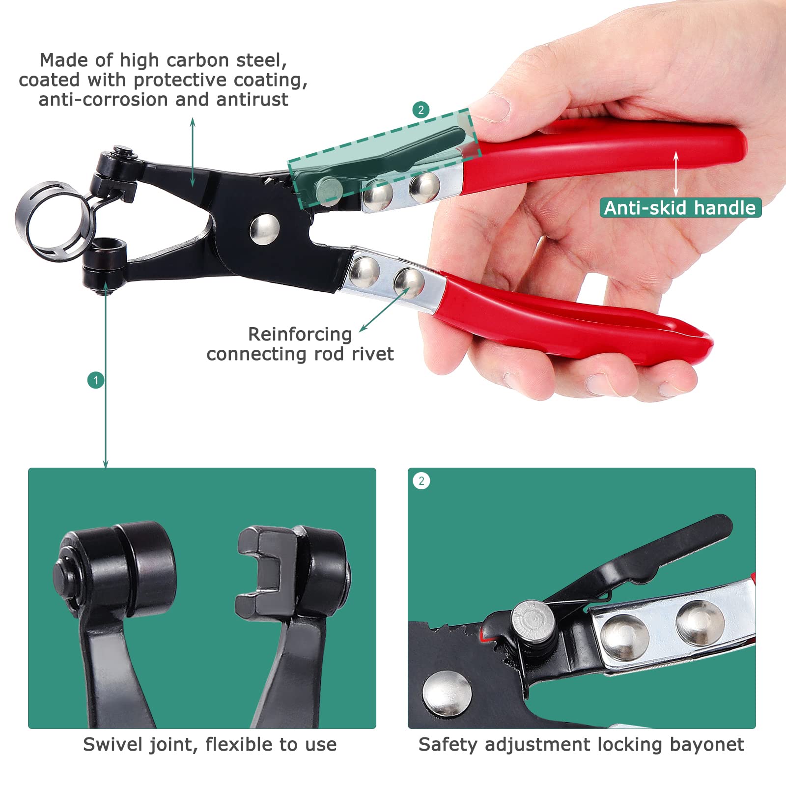 Parfait pour les applications précises sur les conduites de carburant, les tuyaux d'air et d'eau. Matériel: acier 10 tailles : 5 mm, 6 mm, 7 mm, 8 mm, 9 mm, 11 mm, 12 mm, 14 mm, 16 mm, 18 mm. Contenu de l'emballage : 300 colliers de serrage pour tuyau de carburant., 1 pince à agrafes. Qu'il s'agisse d'un collier de serrage pour tuyaux en silicone, d'un collier de serrage pour motos, voitures, jardins ou industriels, ce kit de réparation de conduite de carburant couvre tout. Kit de Colliers de Conduite - 75 Pièces, Inclut Colliers de Serrage à Ressort pour Tuyau de Carburant et Conduite d'Eau Spécifications: Coloris : noir. Les colliers de serrage à ressort peuvent être facilement ouverts et positionnés en toute sécurité en les pressant - Idéal pour les colliers de serrage de tuyau de carburant ou comme kit de réparation de conduite de carburant. Colliers de serrage à ressort Colliers de serrage pour tuyaux de... Colliers de serrage étanches à 360° : la conception bien pensée de l'anneau intérieur assure une répartition uniforme de la pression et une connexion fiable et étanche entre le tuyau et le raccord. Le kit de colliers de serrage convainc par un design rond fermé à l'intérieur pour une pression uniforme - Idéal pour sceller les tuyaux sans dommages. Pince de serrage : 22 cm. Kit Colliers Tuyau Carburant Air Eau Colliers De Serrage à Ressort Colliers De Serrage Pour Tuyaux De Collier Tuyau Carburant Moto Ce collier de serrage pour tuyau de carburant contient 300 pièces de 10 tailles courantes, y compris des colliers de serrage de 5 à 18 mm. Chaque taille est triée dans une boîte solide – Comprend une pince à collier de serrage assortie pour un travail facile Lot complet de 300 colliers de serrage : notre lot de colliers de serrage comprend 300 colliers de serrage en 10 tailles courantes (5 à 18 mm), parfaits pour fixer les tuyaux de carburant, les tuyaux d'air, les tuyaux en silicone, etc.
