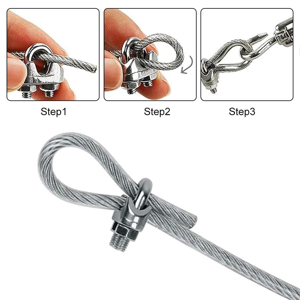 Apportez une deuxième pince aussi près que possible de la boucle. Serre-Câble Inox, 12 Pinces M3 Acier, Fixation Câble 3mm, pour Corde Linge Tondeuse Métallique - Bricolage DESIGN ANTIDÉPLISSANT : Un paquet contient un serre-câble à boulon en U de 6 mm avec une selle forgée et deux écrous. Serre-câble Métallique M3 Serre Cable Inox 3mm, 20 Pièces Cmétalliques M3 Pince De Serre-câble Pour Auvent Corde à Linge L'installation correcte des pinces à fil est la suivante: Apportez le 1., La base ou le fourreau devrait se reposer sur l'extrémité active de la corde - la vis de freinage sur l'extrémité courte. Attirez les mères, mais pas fermement. Serre Cable Inox 6mm,16 Pièces Serre Cable Acier Attaches pour 6mm... Lorsque les deux écrous serrent le serre-câble, le câble est fermement fixé. Son design universel convient pour les câbles, les câbles et les fils de différentes résistances. Matériaux de haute qualité: Le serre-câble est fabriqué en acier inoxydable 304 de haute qualité, il est imperméable, antirouille, résistant à la corrosion et durable.Conception antidérapante : la rainure de serrage du câble métallique est équipée de filetages antidérapants, ce qui peut augmenter efficacement le frottement et empêcher le câble métallique de glisser.Largement... Versatile pour différentes tâches Ces pinces conviennent parfaitement à la fixation de linge, câbles de jardin, tentes, Les bannières ou les plaques industrielles conviennent à la fois pour les projets ménagers et pour les tâches professionnelles de construction, de navigation ou de transport. Apporter la charge initiale - vérifier les mères et tirer après. HAUTE QUALITÉ : Les serre-câbles métalliques à boulon en U sont fabriqués en acier inoxydable 304 pour une résistance élevée à la corrosion et à la rouille. Le matériau en acier inoxydable est résistant et robuste et assure que les pinces m3 maintiennent la corde en sécurité et l'empêchent de se relâcher ou de tomber. La texture antidérapante au milieu du collier améliore la friction.