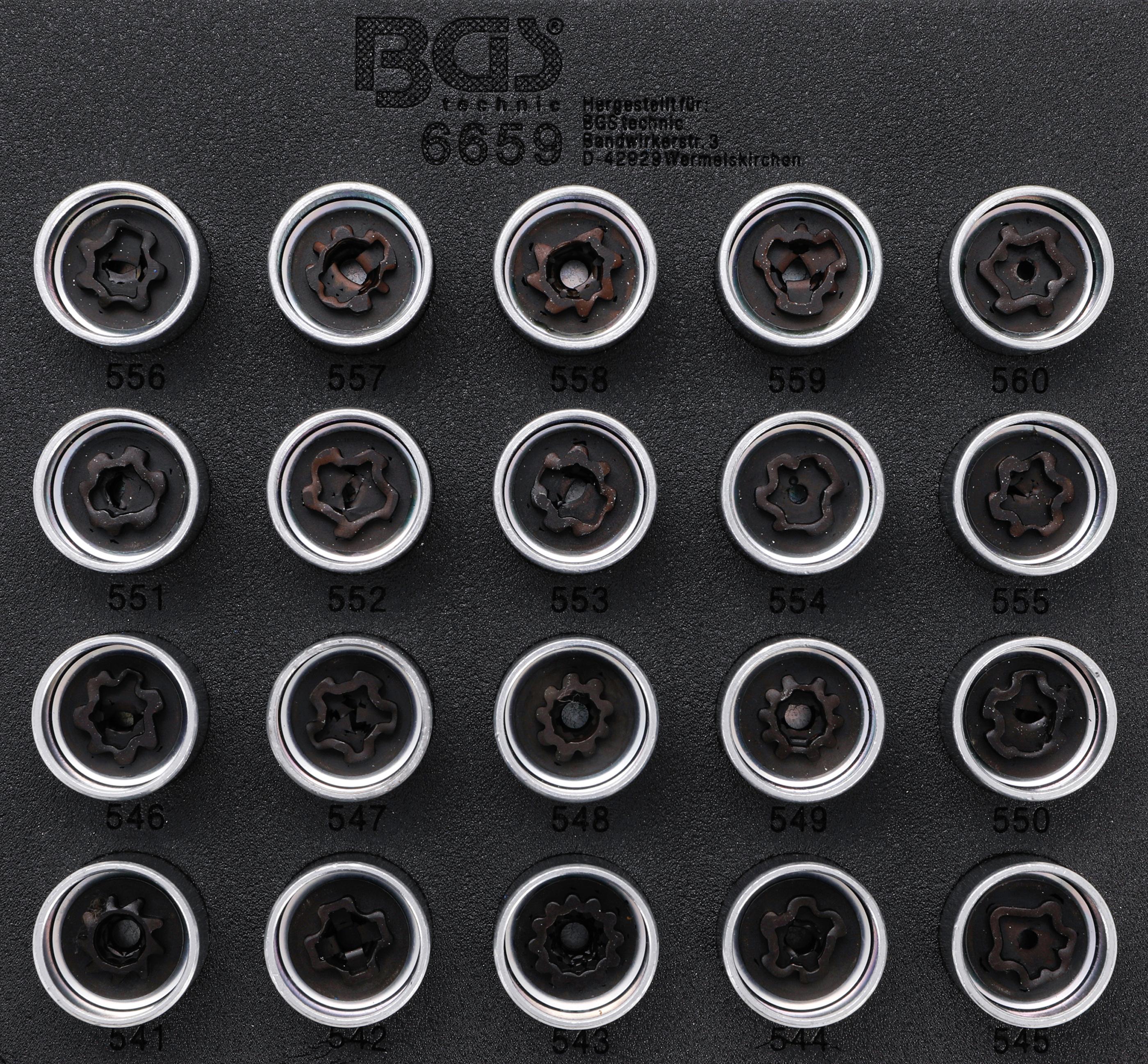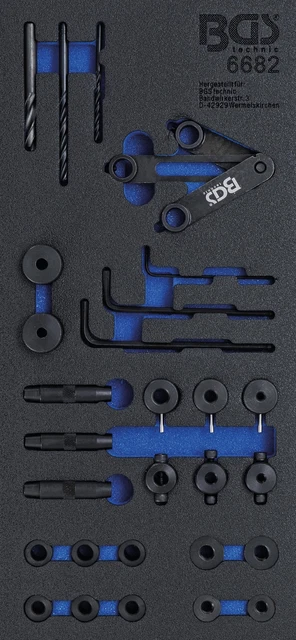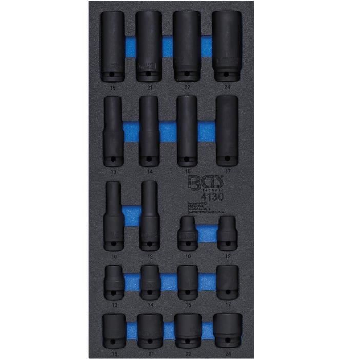 Tous les Inserts et tiroirs de Servante d'atelier de la marque BGS Clé à oeil spéciale pour sondes Lambda, ouverte - 22 mm| Prix discount... Servante Atelier BGS 4127 Insert De Servante D'atelier 1-3 Jeu De Douilles 1-4" 50 Servante Bgs 6 x clés polygonales ouvertes, chromage mat : 8 x 10 - 9 x 11 - 12 x 13 - 14 x 15 - 16 x 18 - 17 x 19 mm Traitement de surface : chromage mat, Largeur : 189 mm, Hauteur : 32 mm, Profondeur: 408 mm BGS - Insert de servante d'atelier 3/3 - Cles mixtes et profil E - 22... 1 x clé spéciale câble de frein avec ouvertures six pans renforcées, double coudage, longueur 175 mm, chromage mat : 10 x 11 mm En acier au chrome-vanadium 6 x douilles spéciales pour clé à douille, entraînement carré femelle 10 mm (3/8), fendues: 10 mm (fente 7,4 mm) - 11 mm (fente 8,8 mm) - 12 mm (fente 9,1 mm) - 14 mm (fente 10,5 mm) - 17 mm (fente 13,3 mm) - 19 mm (fente 14,4 mm) Pour le montage de capteurs de température câblés en haut et de côté, d’interrupteurs thermiques et autres composants 6 x clés polygonales ouvertes, chromage mat: 8 x 10 - 9 x 11 - 12 x 13 - 14 x 15 - 16 x 18 - 17 x 19 mm
