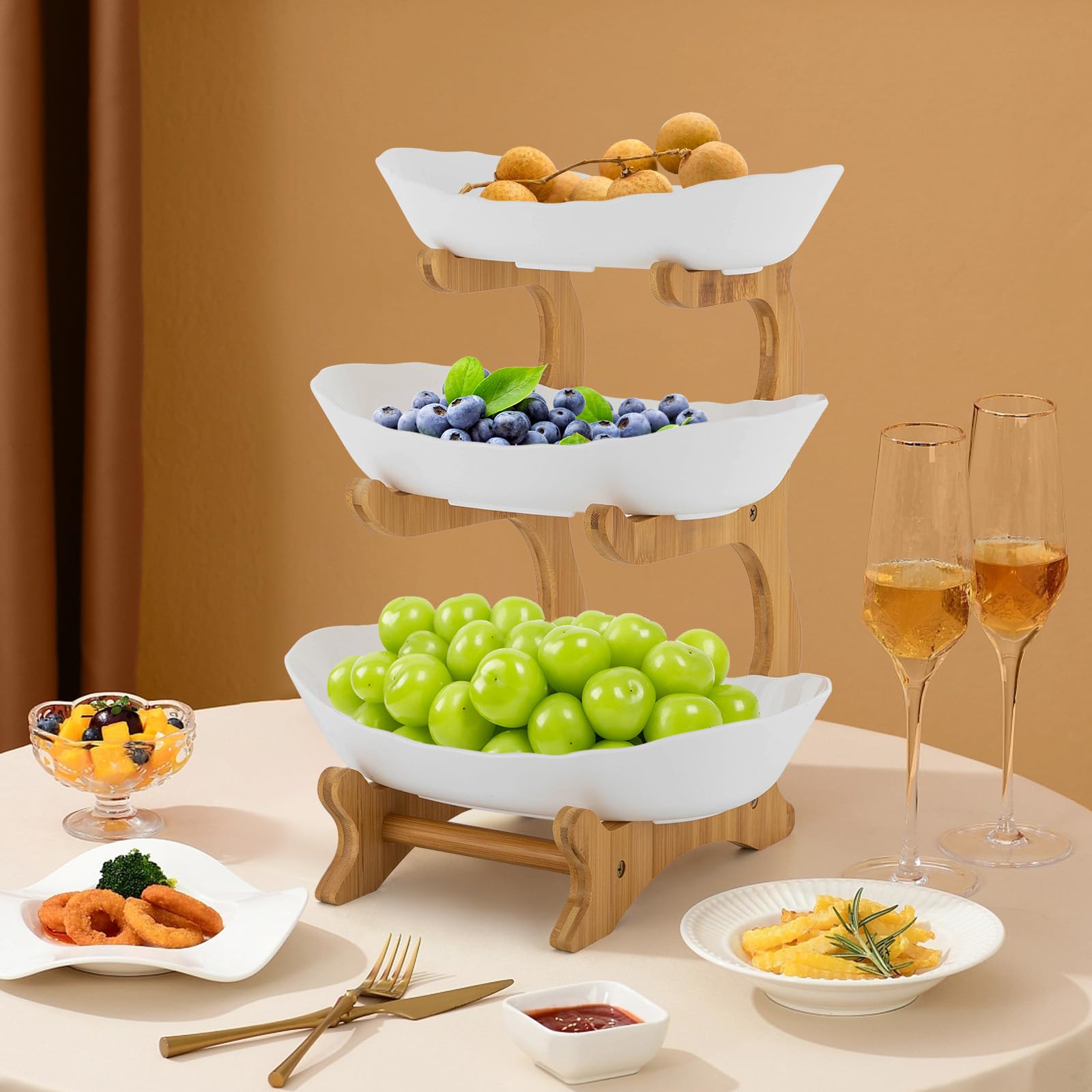 Peu encombrant : les trois plaques en céramique sont disposées de bas en haut et utilisent ainsi l'espace vertical et prennent moins de place que les autres plaques. Description : Dans la poursuite d'une vie moderne naturelle et saine, nous avons soigneusement conçu un bol à fruits en polypropylène de qualité alimentaire à trois niveaux avec support en bois de bambou qui mélange l'esthétique traditionnelle avec des matériaux modernes. 1 diagramme d'installation en anglais. Lors du nettoyage, veuillez ne pas le frotter avec du fil ou des objets durs ou immerger dans l'eau pendant une longue période., 3., Veuillez suivre le diagramme pour l'installation., 4., Veuillez permettre une légère différence de couleur en raison de la lumière de prise de vue et une marge d'erreur de 1 à 3 cm en raison des mesures manuelles et assurez-vous que cela ne vous dérange pas avant de commander. Optimisation de l'espace : la taille compacte du support (8,86 x 5,51 x 12,6 pouces) peut être utilisée de manière significative, tandis que le plateau à fruits qui peut être séparé et empilable pour une utilisation est également pratique pour vous de ranger et d'optimiser l'espace. Service client : nous nous engageons à fournir des produits et des services de qualité. Durable et robuste : le support en bois de bambou épais de 12 mm est poli, il n'est pas facile à corroder et à rouiller, tandis que le plateau à fruits est moulé en polypropylène de qualité alimentaire de haute qualité en une seule pièce, ce qui garantit également qu'il n'est pas facile à déformer lors d'une utilisation à long terme. Ce n'est pas seulement un accessoire pratique pour la maison, mais aussi un travail d'art sur la table à manger, ajoutant une touche de fraîcheur et de tranquillité d'esprit à vos réunions de famille ou à vos loisirs quotidiens. Texture fine : la texture naturelle sur le thème fait à la main à partir de bois de bambou délicat au toucher et apporte donc une atmosphère naturelle et confortable à votre maison. En outre, la conception à structure ouverte est conduisant à la circulation de l'air, réduit l'accumulation d'humidité et prolonge la période de fraîcheur des aliments. pandoo Bols en babou | Bol à fruits, saladier en babou | Vaisselle à... L'assiette à fruits en céramique est cuite à haute température et a donc une surface fine et lisse qui est agréable au toucher. Le support est fabriqué en bambou durable et en bois, de sorte qu'il peut transporter les assiettes en céramique et de nombreux autres aliments. Hiérarchisation scientifique : trois tailles différentes de plateau de fruits sont pratiques pour la classification de différents fruits ou collations, à la fois beaux et hygiéniques, en évitant les aliments entre chaque autre type de corde. Bords lisses : les bords lisses et sans bavures améliorent la beauté du produit et prennent soin de votre peau lors de l'installation et du nettoyage. Il est également adapté pour ranger de petits objets tels que des clés et des écouteurs sur votre bureau de salon ou table d'entrée. Présentoir à gâteaux à 3 étages en plastique blanc et argenté - Pour Cet ensemble de 3 couverts contient 3 bols de tailles différentes Corbeille à fruits à 3 niveaux en porcelaine fabriquée en babou et... Taille du petit bol : 24,6 x 15 x 5 cm Taille du bol moyen : 26 x 16,8 x 5,5 cm. Rangement Cuisine Design HOMCOM Chariot De Service à 3 étages En Bambou, Chariot De C Boite A Pain Bois Très durable : le support d'assiette à fruits en bambou et support en bois et trois assiettes en céramique. Taille du grand bol : 28 x 18,8 x 6 cm/11 x 7,4 x 2,36 pouces Taille totale : 22,5 x 14 x 32 cm / 8,86 x 5,51 x 12,6 pouces Dimensions du colis : 25 x 16 x 34 cm. Caractéristiques : Matériau : bois de bambou, PP de qualité alimentaire Couleur : bois, blanc Forme : Yuanbao Processus : poli, moulage en une seule pièce Type de montage : comptoir, plateau de table Assemblage requis : oui Passe au lave-vaisselle : Nombre de bols : 3., Nombre d'animaux : 3., Épaisseur de la planche : 12 mm. Facile à assembler : la structure simple et le diagramme d'assemblage transparent inclus vous permettent de terminer l'installation rapidement. Lot de 3 plateaux alimentaires : offre la présentation parfaite pour les collations, les aliments et les collations.