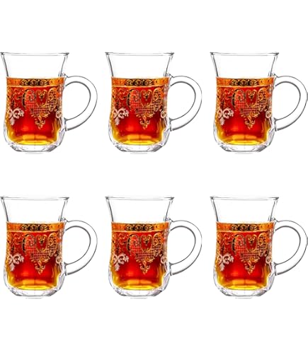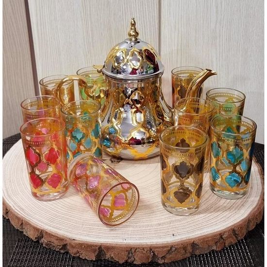 Lot de 1 théière de 48 oz et 6 verres élégants à thé marocain de Lot 6 Verres Thé 150ml Style Persan Service Thé Oriental MIELIMON Lot De 6 Verres à Thé Marocain En Verres Thé Arabe 6 Verres th marocains comme service th orientale, 6 pi ces avec des ornements argent filigrane arabe, 100% fabriqu au Maroc, pour que vous puissiez servir votre th la menthe en style oriental comme en 1001 nuits, des vrais listels d coratifs sur la table ou une tag re dans votre cuisine, votre salon ou votre salle manger, comme accessoires de... Lot de 6 verres à thé marocains élégants persans arabes pour servir du café, expresso Set de 4 verres à thé marocains avec soucoupe 125 ml - Tasses à thé... Dimensions du produit : hauteur env., 10 cm environ. 6 verres à thé marocains pour profiter d'un thé spécial.
