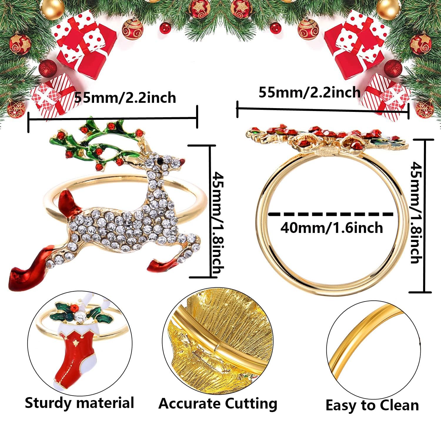 - Fabriqués en alliage, ces ronds de serviette sont conçus pour durer longtemps, même pendant les fêtes. Lot de 4 anneaux de serviette de table, uits de ... - Grandado Porte-serviettes de noël – offrez un agréable dîner à vos familles, amis et invités, ronds de serviette festifs Anneau Serviette Tête De Cerf Shsese – Anneaux De Serviette En Forme De Cerf De ... – Grandado Anneaux Serviette Festifs -Informations produit : Bouton de serviette - Anneau de serviette délicat en forme de tête de cerf pour Noël, magnifique et tendance. - Accentuer une ambiance festive lors du dîner de Noël avec des ronds de serviette en forme de cerf. Accroche Rideau Luxueuse avec Tête de Cerf en Alliage d'Aluminium... ronds de serviette décoratifs en forme de bois de cerf Ronds de serviette décoratifs de Noël : Ces ronds de serviette décoratifs sont confectionnés dans un tissu adapté. Fabriqués en alliage, ils embelliront votre table de Noël créeront une ambiance festive.Ajoutez une touche d'élégance à vos réceptions de Noël avec ces magnifiques ronds de serviette ornés d'un charmant motif de tête de cerf Elles conviennent aux fêtes de fin d'année, aux cuisines, aux centres commerciaux, aux bars, etc. Informations sur les produits Décorations de Noël avec des cerfs : Pour un dîner de Noël réussi, ces décorations, agrémentées d'accessoires festifs, créeront une ambiance plus chaleureuse. Décoration de noël cerf - un cerf au design élégant orné de diamants, original et créatif, idéal pour noël Le forfait comprend 4 ronds de serviette Caractéristiques - Couleur : Cerf de Noël argenté. Créez des souvenirs inoubliables : utilisez ces ronds de serviette décoratifs pour faire de chaque repas un moment mémorable et profiter de des fêtes.