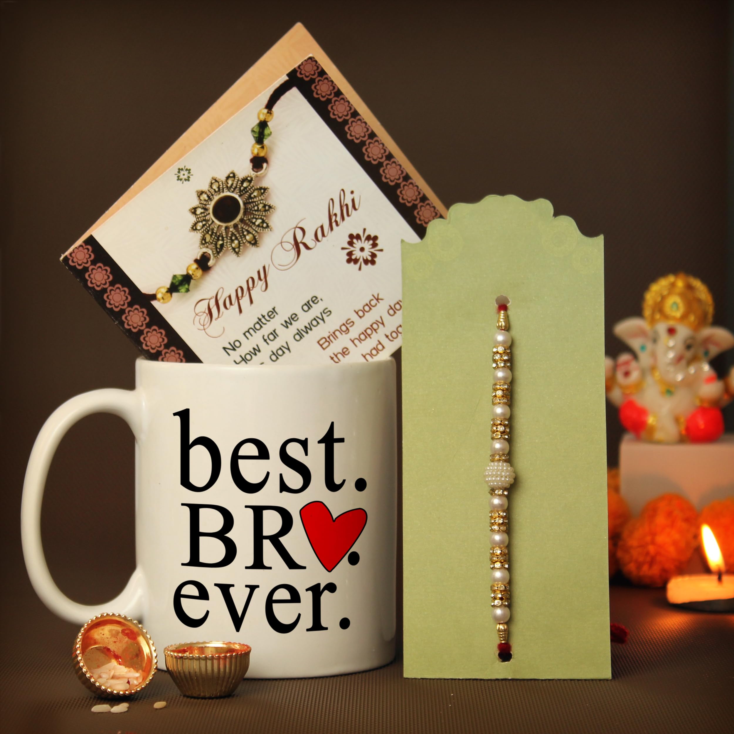 So we have designer Rakhis embedded with Rudraksha, OM, Lord Ganesha and Radha Krishna pendants. Fast Delivery: All SHOPOGENIE products are fulfilled by Amazon Warehouse so that you can get the products within time. Handcrafted: The traditional designer Rakhi has been specially designed and handcrafted by the women artisans who are skilled at creating beautiful designs. Rakhi Fête Frère Sœur Rakhi Gifts For Brother Rakhi Gift Set For Brother - 2 Rakhis With Coffee Mug, Card & Roli Tikka Brother Rakhi Combo Coffret Rakhi Frère At SHOPOGENIE, we understand the significance of Raksha Bandhan and the importance of finding the perfect Rakhi Combo for your beloved brothers. In order to add an essence of modernity, we have trendy Rakhis with Bro written on them. Tonkwalas Designer Rakhi Gift Set For Brother Combo With Roli Chawal Greeting Card TW MUG 60 CE... Best Rakhi gift for brother, bhabhi, kids. Package Contains: This package contains set of 2 Rakhi with Mug, roli chawal and Rakhi wishes greeting card. Unveiling the Art of Rakshabandhan Marketing: A Digital Delight Made from Premium Quality Material this product assures to remain in its original glory. We meet all your expectations by providing exquisite Rakhis to strengthen the roots of ever-lasting relationships. The materials used are carefully choosen to provide comfortable and pleasant wearing experience RAKHI is a sacred thread that a sister ties to her brother on the special occasion known as Raksha Bandhan, a Hindu festival that celebrates sibling relationship and love. 100% genuine product from Shopogenie.