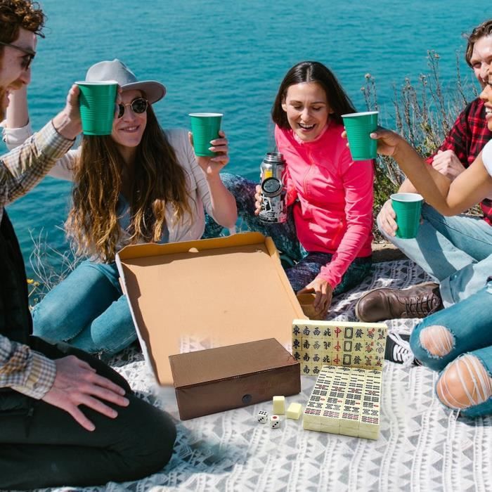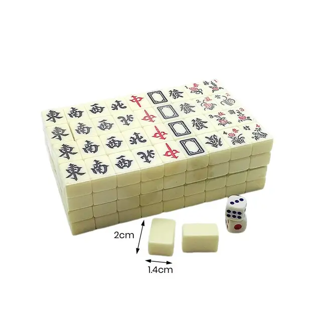 Mahjong Chinois Mahjong Tuiles Jeu Voyage Complet Mahjong Ensemble Famille Mahjong Jeu Pour 4 pièces Cartes Mahjong 2024, Règles Mahjong 2024 les plus récentes, Cartes Mahjong 2024 à grand... Vita Mahjong Jeu Familial Asiatique Set Mahjong Chinois Complet - 146 Tuiles + 2 Dés | Jeu De Société Familial Train Mexicain Jeu De Société Boîte Rangement Voyage Mahjong 【Set Authentique de Mahjong Chinois】Profitez de l'expérience de jeu traditionnelle ! Chaque pièce montre clairement des chiffres arabes ET des caractères chinois - idéal même pour les joueurs ne lisant pas le chinois. Mahjong Chinois Mahjong Tuiles Jeu Voyage Complet Mahjong Ensemble Famille Mahjong Jeu Pour... Parfait pour les connaisseurs et tous ceux qui souhaitent apprendre le jeu original. Le matériau robuste et la conception stable font de ce set le compagnon parfait pour les voyages, les fêtes ou les soirées jeu en extérieur. 【Cadeau Parfait pour Toute Occasion】Ce jeu de société mahjong est un cadeau fantastique pour les anniversaires, Noël ou les anniversaires de mariage. 【Contenu de la livraison】 Le jeu de Mahjong complet contient 144 tuiles à fond vert (36 cercles, 36 tuiles de bambou, 36 figures, 12 dragons, 16 vents (N, E, S, O), 8 fleurs et saisons), ainsi que 2 tuiles de rechange et 3 dés de Mahjong