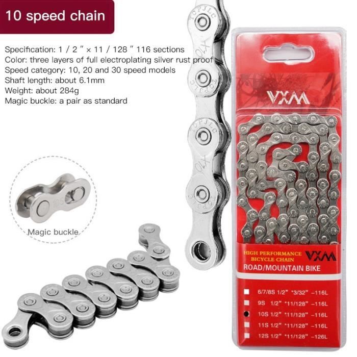 Accessoire vélo,Pièces de vélo de route,chaîne de vtt,vitesse 8,9,10,11 vitesses,116L,EL SL... Chanfreinage des plaques intérieures et extérieures et traitement anti-étirement. Vélo de route, VTT, BMX, vélo de course, vélo à pignon fixe. Chaîne Compatible Pignon Fixe Course Chaîne SLX CN-HG601 11V 126 Maillons (Attache Rapide Shimano 105 Changement de vitesse fluide. En vélo de route, comme en gravel ou en VTT, on constate, ces dernières années, une forte augmentation du nombre de pignons composant la cassette (jusqu’à 12 et parfois 13 pignons Vérifiez les chaînes et tournez le pignon pour vous assurer que la chaîne est bien fixée. Chaine 12v - Du choix et des prix