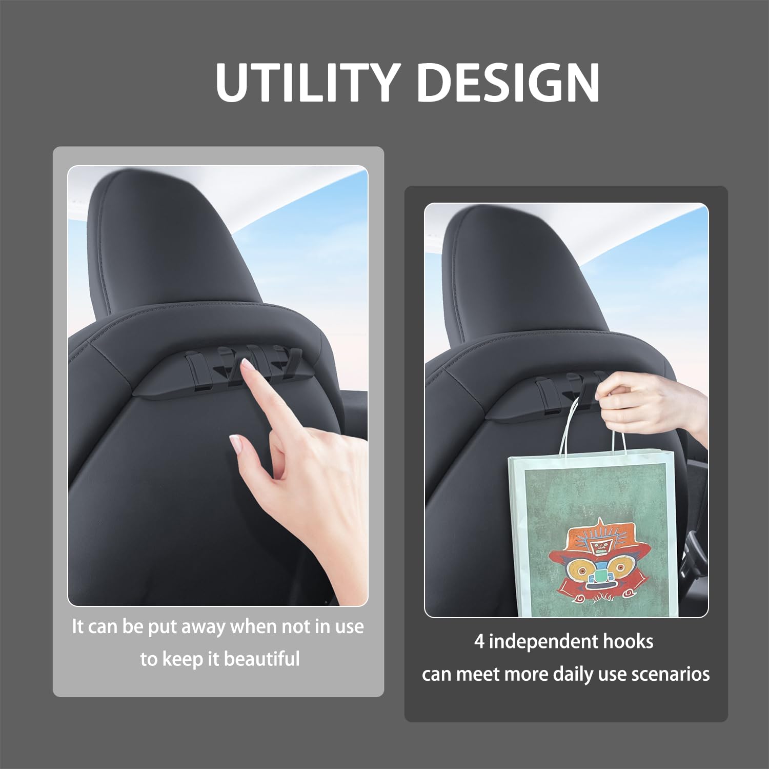 Quatre options de rangement : chaque crochet offre quatre options de rangement pratiques, parfait pour les sacs, vestes, et plus encore, ce qui facilite le rangement de vos effets personnels pendant chaque voyage. Crochet Dossier Siège Pliable 5kg Crochet Pour Siège Arrière Pour Tesla Model Y Et Model 3 *LOT DE 2 Accessoire Rangement Voiture Model 3 Caractéristiques : * Ajustement personnalisé : spécialement conçus pour Tesla Model 3 et Model Y, ces crochets s'adaptent parfaitement au siège de voiture d'origine, un ajustement parfait qui améliore l'esthétique intérieure de votre véhicule. Design personnalisé : conçus spécifiquement pour le modèle 3 et le modèle Y, ces crochets épousent parfaitement les sièges de votre véhicule... * Compatibilité haute universalité : non., * Numéro OEM : non. Contenu de l'emballage : 1 crochet/2 crochets. Modèle miniature 1:18 moulé sous pression de la Model 3 ; Crochet de rangement · Rangez les câbles du connecteur mobile Tesla en toute sécurité grâce à notre... Caractéristiques : * Nom de la pièce : suspension cachée pour dossier de siège de voiture., *Matériau : ABS. Leur maintien sûr garantit qu'ils ne glissent pas et ne causent pas de dommages à l'intérieur de votre voiture. Design personnalisé : conçus spécifiquement pour le modèle 3 et le modèle Y, ces crochets épousent parfaitement les sièges de votre véhicule, améliorant l'esthétique générale de l'intérieur de votre voiture. Crochets Tesla | Organisation du Frunk, du Coffre et du Dossier de Siège * Construction : fabriqués à partir de matériau ABS haute résistance, ces crochets sont inodores et résistent aux températures élevées et à la lumière du soleil, capables de supporter jusqu'à 5 kg sans se plier ou se casser. Fonction pliable innovante : le design pliable vous permet de ranger les crochets lorsque vous ne vous en servez pas, minimisant les risques de blessures tout en gardant votre voiture organisée et adaptée aux passagers.