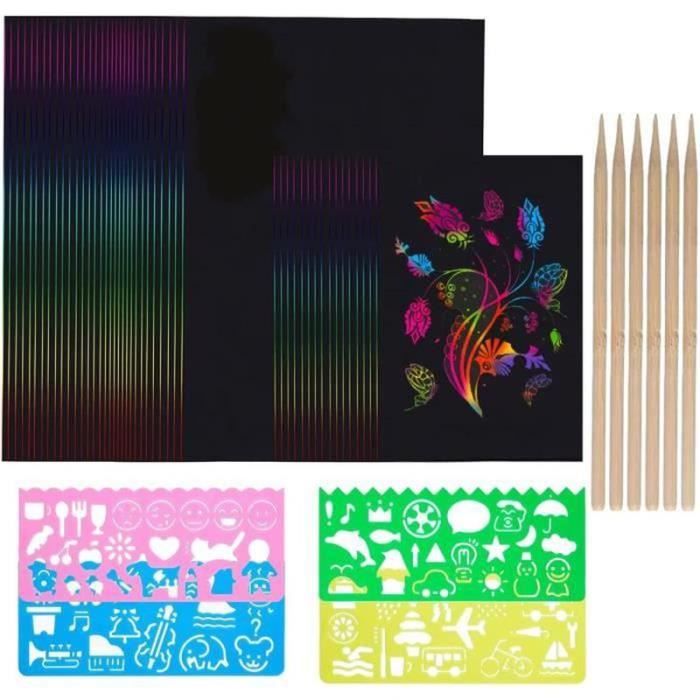 4X PAPIER À gratter peinture à gratter apprentissage préscolaire avec Idéal pour les débutants comme pour les artistes chevronnés, le kit comprend 12 pages de scratch art pré-conçues et 4 outils ergonomiques, ce qui en fait une solution complète pour soulager le stress, favoriser la pleine conscience ou s'adonner à un loisir créatif joyeux. Feuilles à Gratter Arc-en-ciel SiYear Ensemble De Papier De Peinture à Gratter Pour Adultes Et Cadeau Artistique Conçu pour être facilement transportable, ce kit de scratch art est léger et prêt à voyager, parfait pour des sessions créatives à la maison, pendant les trajets ou en vacances. Marque-Pages À Gratter,24 Feuilles De Papier À Signets Rainbow Scratch... 4X PAPIER À gratter peinture à gratter apprentissage préscolaire avec... 【Kit complet de peinture à gratter】 - Comprend 12 feuilles de papier à gratter pré-conçues et 4 outils ergonomiques (1 stylet en bois, 1 petit grattoir rouge, 1 stylo gomme et 1 pinceau noir), fournissant tout le nécessaire pour des projets artistiques à gratter sans fin et une exploration créative. 【Libérez votre créativité avec le livre de scratch art】 - Parfait pour les adultes, ce livre de scratch art améliore l'expression artistique et la concentration grâce à des activités thérapeutiques de peinture par grattage, idéales pour la relaxation et la pleine conscience. 【Cadeau écologique pour tous les âges】 - Fabriqué à partir de matériaux non toxiques et recyclables, ce livre de scratch art est un cadeau attentionné pour les artistes, les adolescents ou les adultes à la recherche d'un exutoire créatif sûr et respectueux de l'environnement. Il suffit de gratter le revêtement noir à l'aide des outils fournis pour révéler de superbes motifs, sans avoir besoin de peinture ni de pinceaux ! 【Révélez des couleurs et des textures étonnantes】 - Grattez la surface noire à l'aide des outils fournis pour découvrir des motifs arc-en-ciel éclatants sur du papier scratchboard de qualité supérieure, sans peinture, sans pinceaux et sans salissures ! 【Description du produit】 Libérez l'artiste qui sommeille en vous grâce à ce livre de scratch art pour adultes et enfants, conçu pour stimuler la créativité, la concentration et la relaxation à travers la peinture thérapeutique par grattage.
