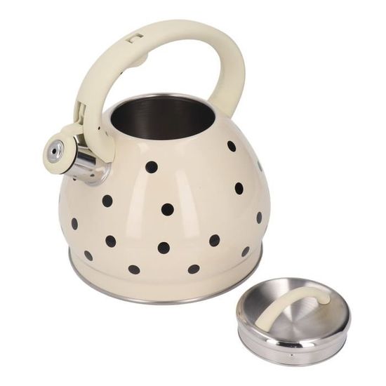 Le fond de la bouilloire est équipé d'acier inoxydable et d'une couche d'aluminium conductrice de chaleur pour chauffer uniformément et maximiser la conduction thermique. La forme ergonomique et le design maximisent votre confort. Description du produit : Efficace : notre bouilloire est plus rapide et plus économe en énergie contrairement aux bouilloires électroniques. Lors de l'ébullition de l'eau ou du soulèvement de la bouilloire, la buse est légère. Bouilloire Inox 3 Litres Sifflet Induction Gaz Bouilloire Sifflante Inox Bouilloire Sifflante En Acier Inoxydable 3L - Compatible Induction, Gaz, Électrique Bouilloire Sifflante Induction Bouilloire Pour Famille Bouilloire à l'aspect unique : elle peut être utilisée comme décoration de table pour une théière ou un récipient pour stocker de l'eau. Conseils d'entretien : veuillez noter que la bouilloire à sifflet ne passe pas au lave-vaisselle. Compatible avec différentes plaques de cuisson : le théière convient à toutes les sources de chaleur, y compris l'induction, les cuisinières électriques, les cuisinières à gaz, les cuisinières à rayonnement. Veuillez utiliser un feu petit ou moyen pour chauffer la théière, elle chauffe très rapidement et économise de l'énergie. Théière Cuisine Gaz Induction Bouilloire Sifflante Acier Inoxydable 3L - Rapide Et Sécurisée - Pour Thé/Café - Compatible Toutes Plaques Cuisson Bouilloire 3 Litres Acier Inoxydable C'est un phénomène normal et peut être retiré si l'acier inoxydable produit de la « rouille » ou des dépôts de calcaire à l'intérieur de la bouilloire. Rincez ensuite à l'eau claire., 2., Utilisez de l'eau gazeuse : ajoutez 500 g d'eau gazeuse à une concentration de 1 % dans la bouilloire, secouez-la légèrement, rincez pour éliminer les dépôts de calcaire., 3., Utilisez du citron : faites bouillir des tranches de citron dans la bouilloire, égouttez après une demi-heure, puis lavez. Cela la rend idéale pour un usage domestique dans la cuisine. (Conseil : ne remplissez que 80 % de la capacité pour que la bouilloire siffle lorsque l'eau bout). Elle permet de faire bouillir de l'eau pour le café, le thé ou les infusions. Pratique grâce à sa poignée pliable, son couvercle et son sifflet à charnière Grande capacité de 3 L : 3 litres d'eau de grande capacité pour répondre aux besoins de toute la famille. Réduit la fréquence d'ébullition répétée, économise de... Conseils d'entretien de la bouilloire en acier inoxydable : 1., Utilisez du vinaigre de vin blanc : diluez le vinaigre de vin blanc avec de l'eau 10 fois, faites bouillir l'eau, laissez refroidir pendant une heure. La finition professionnelle de qualité alimentaire et l'artisanat en acier inoxydable garantissent que cette bouilloire est résistante à la rouille et à la corrosion. Bouilloire de qualité supérieure résistante à la rouille et à la corrosion : le corps de la bouilloire en acier inoxydable galvanisé pour une longue durée de vie. Sifflet fort lorsque l'eau bout : cette théière sifflante émet un sifflement fort lorsque l'eau atteint le point d'ébullition, assez fort pour vous alerter lorsque vous êtes occupé dans la pièce voisine. Cette bouilloire pour plaque de cuisson a un couvercle hermétique qui maintient la vapeur dans la bouilloire chaude, offre une étanchéité à 100 % pour augmenter l'efficacité de la cuisson. La capacité utilisable est marquée par une ligne Max sous le bec., Capacité : environ 2,6 l