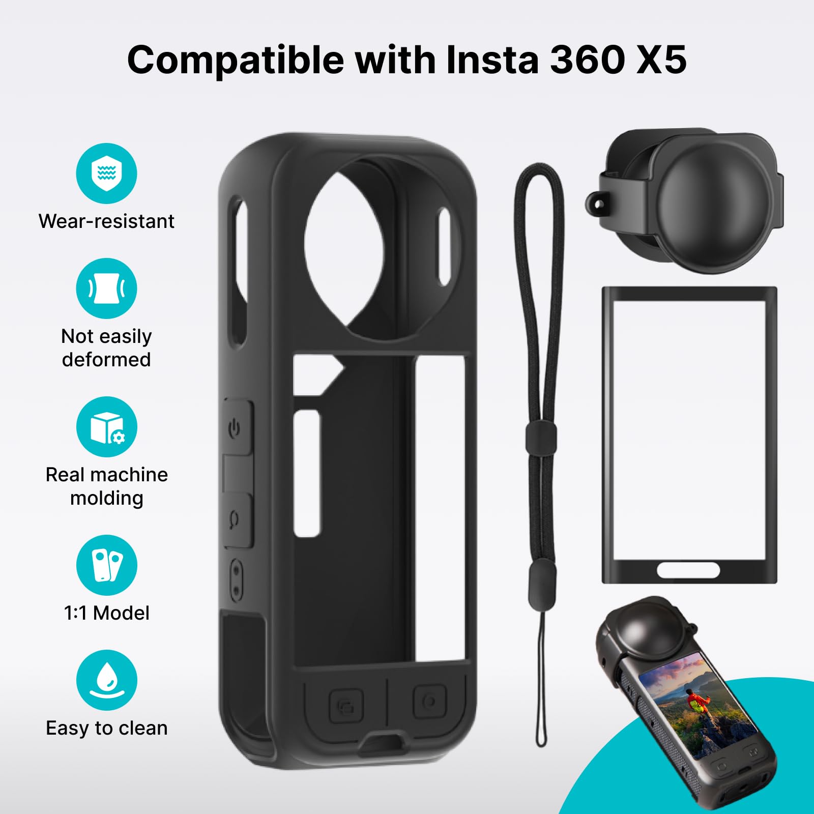 Insta X5 Étui Protection Insta360 X4 Higatful - Coque Rigide Avec Ce matériau résilient résiste à la fissuration ou à la rupture, assurant une protection durable en laquelle vous pouvez faire confiance tout au long de l'utilisation. Dragonne Et Lanière Sécurité Coque En Silicone Avec Cache Objectifs Pour Insta360 X5 | LCE Accessoires Insta 360 X5 Complet Contenu du produit: vous recevrez 1 ensemble d'accessoires de caméra, y compris 1 étui de protection, 1 garde d'objectif, 1 bracelet de poignet et 1 longe, offrant une protection complète à votre appareil photo contre les usures quotidiennes. Support mural compatible avec Apple TV 4K/HD,support TV avec dragonne... Coque De Protection Pour Télécommande Avec Dragonne Compatible Avec... Compatibilité: ces accessoires de caméra sont compatibles avec Insta 360 x5., Veuillez noter que notre produit n'est pas parrainé ou approuvé par, ou affilié aux marques qu'il correspond, y compris Insta. Le silicone de qualité offre une excellente absorption de choc, protégeant votre appareil photo contre l'impact ou les rayures. En outre, avec une conception de créneaux d'ouverture sur la batterie et la zone de couverture USB, vous pouvez facilement remplacer la batterie, détacher ou installer la carte microSD et ouvrir ou fermer le couvercle USB sans retirer le boîtier de protection. En raison de la différence entre les différents moniteurs, il peut exister une légère différence de couleur. Veuillez vérifier la taille avant l'achat. Spécification: Couleur: noir, argent Matériau: silicone, nylon, métal, fibre Taille du produit: Protecteur en silicone: 12,7x4,5x2,7 cm Garde d'objectif: 6x5cm Sangle de poignet: 25 cm Longe: 7cm Détails du package: 1 x protecteur en silicone 1 x garde d'objectif 1 x bracelet 1 x longe Note: En raison de la mesure manuelle, la taille et le poids peuvent avoir une certaine erreur.