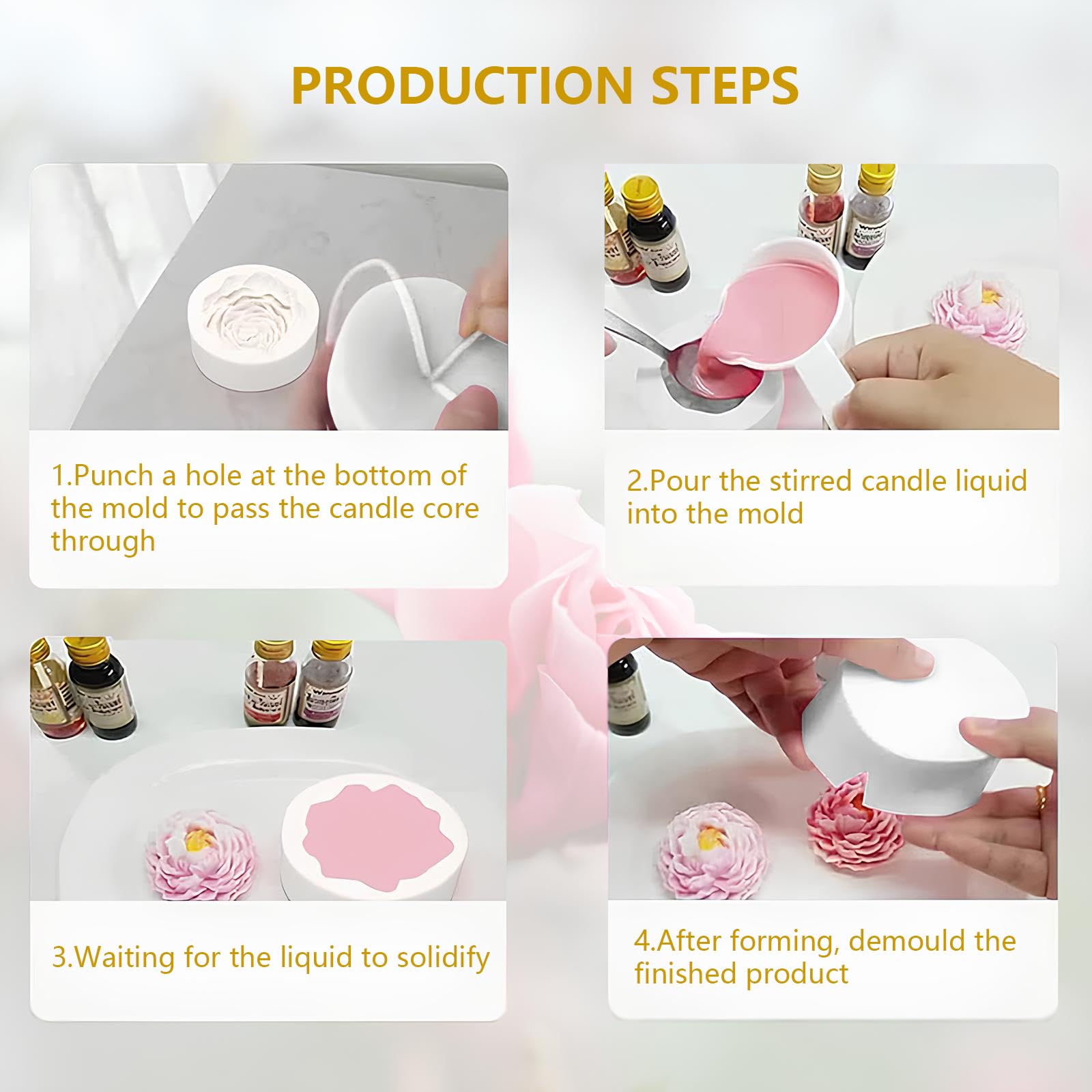 2 Pièces Moule Silicone Bougie Fleurs Moules pour Bougies Peut Etre Utilisé pour Fabriquer des Bougies de L'aromathérapie du Savon des Bonbons des Desserts et des Décorations D'intérieur Moule pour Bougie Pivoine Madéco A Moi Matériel Pour Fabriquer Des Bougies 2 Pièces Moule Silicone Bougie Fleurs Moules Pour Bougies Peut Moules Réutilisables Fleur 2 Pièces moules à bougie en silicone en forme de pivoine, Moule à bougie 3D DIY, Pour la fabrication de bougies et de savon Chacun mesure environ 9 x 9 x 4,4 cm. Moule à Bougie, Moule en Silicone pour Porte-Bougie Pentagramme, Moule... Surface intérieure lisse, texture claire, facile à démouler. Pivoine élégante : les pivoines en pleine floraison sont très belles, les lignes de chaque pétale sont très claires, et les produits résultants sont souvent aussi délicats que les fleurs. Peut également être utilisé pour faire de belles décorations de dessert, chocolats, bonbons, cupcakes, biscuits, gelées, etc. Polyvalent : idéal pour les savons, les bougies, les projets de résine, les travaux de béton et bien plus encore.