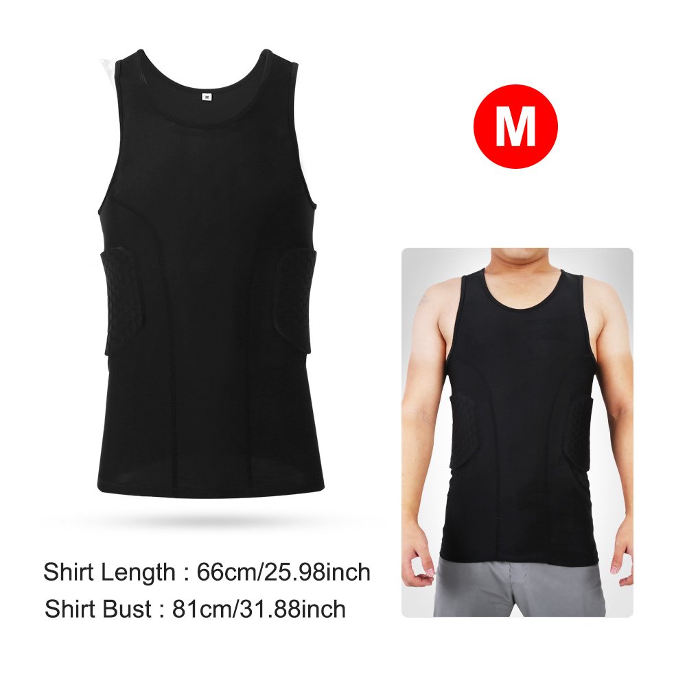 Yheonver Gilet rembourré de protection des côtes pour homme, chemise de compression avec 3 coussinets pour football, football, basket-ball, hockey Short Rembourré Sport Contact Maillot Rembourré SOONHUA Homme - Protection Silicone Pour Rugby Basket Sports De Contact C 864615 Protection épaules Côtes Silicone Il est fait en 90% polyester et 10% polyuréthane, donc hyper respirant et confortable. Les protections en silicone sur les côtes absorbent bien les chocs... Matériau de qualité supérieure : le gilet de sport est fabriqué en matériaux composites de haute qualité, extensible, doux pour la peau, confortable, portable et respirant En 90% polyester/10% polyuréthane, il est extensible, respirant et confortable sur la peau. Les protections en silicone en forme de peigne dispersent les chocs... Différentes occasions : le gilet de sport est adapté à différents sports, rugby, basketball, volley-ball, etc Facile à utiliser : cette combinaison de sport se compose d'un t-shirt, d'un gilet et d'un short, vous pouvez choisir l'un ou tous d'entre eux pour répondre à vos besoins