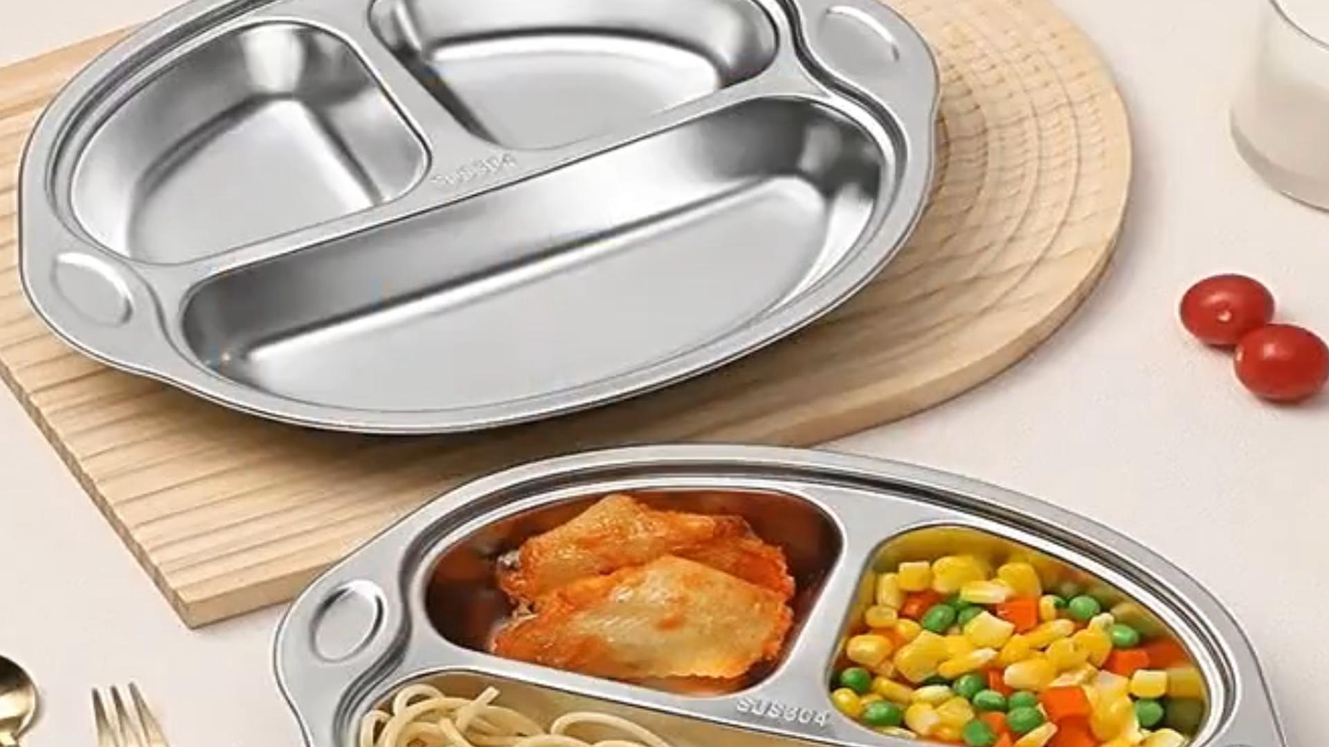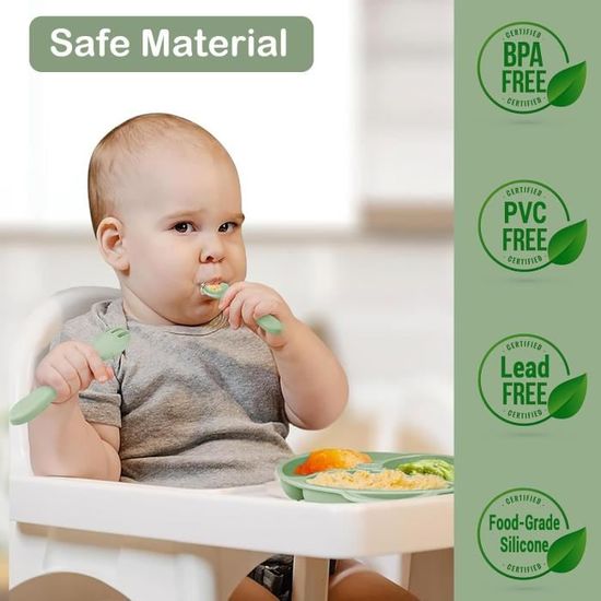 Dimensions : 19,6 x 19,6 x 4 cm., ., Couleur : argenté., ., Contenu : . Qu'il s'agisse de fruits, de légumes ou de pommes de terre, chaque plat a sa propre place pour s'assurer que votre bébé reçoit tous les nutriments essentiels., . Sécurité et stabilité. Ainsi, vous pouvez toujours compter sur la durabilité et l'hygiène de l'assiette., Spécifications: . La ventouse pour bébé est équipée d'une ventouse puissante qui assure une excellente adhérence sur toute surface dure et plate. Description Une assiette de divisée est en acier inoxydable matériau PP haut de gamme, sûrs . Modélisation en une... Ainsi, vous pouvez encourager de bonnes habitudes alimentaires chez votre enfant dès le début. En outre, il est facile à nettoyer, que ce soit manuellement ou au lave-vaisselle. L'assiette pour enfant avec compartiments offre 3 compartiments séparés dans lesquels vous pouvez servir différents aliments. Assiette Bébé Acier 316 Lavable Plaque En Silicone Séparer Pour Bébé, Plateau à 3 Compartiments En Forme De Bale Repas Bébé équilibré Fabriqué en acier inoxydable, solide, rouille et sûr à utiliser Conception de plateau alimentaire divisé, idéal pour le contrôle des portions et offrant un équilibre des aliments Venez avec la couverture pour garder la nourriture, empêcher de la poussière Facile à nettoyer et au lave-vaisselle. Épaississez le matériel, anti-chute, plus durable et réutilisable Convient pour le... Cette forme s'adapte parfaitement au bord des cuillères afin que votre enfant puisse facilement ramasser la nourriture sans déborder. Acier inoxydable 316 de haute qualité pour plus de sécurité et de durabilité : notre plateau divisé en acier inoxydable est fabriqué en acier inoxydable 316., Le revêtement en acier inoxydable est non seulement résistant à la corrosion, antioxydant et résistant aux hautes températures, mais aussi adapté aux aliments. Vous pouvez servir des aliments différents séparément pour garantir que votre enfant reçoit tous les nutriments dont il a besoin. La combinaison de subdivision, ventouse puissante et acier inoxydable de haute qualité en font le compagnon idéal pour les repas de votre enfant à la maison ou en voyage. Assiette Inox Bébé 3 Compartiments STFALI Assiette Bébé Inox Avec Le plat pour bébé est sain et inodore, ce qui en fait un choix sûr et durable pour votre famille. Cela réduit le risque de basculement et de déversement, et rend les repas sans stress pour vous et votre bébé., . Matériau de qualité supérieure et facile à nettoyer. Même si votre enfant secoue ou trébuche pendant le repas, l'assiette reste bien en place.