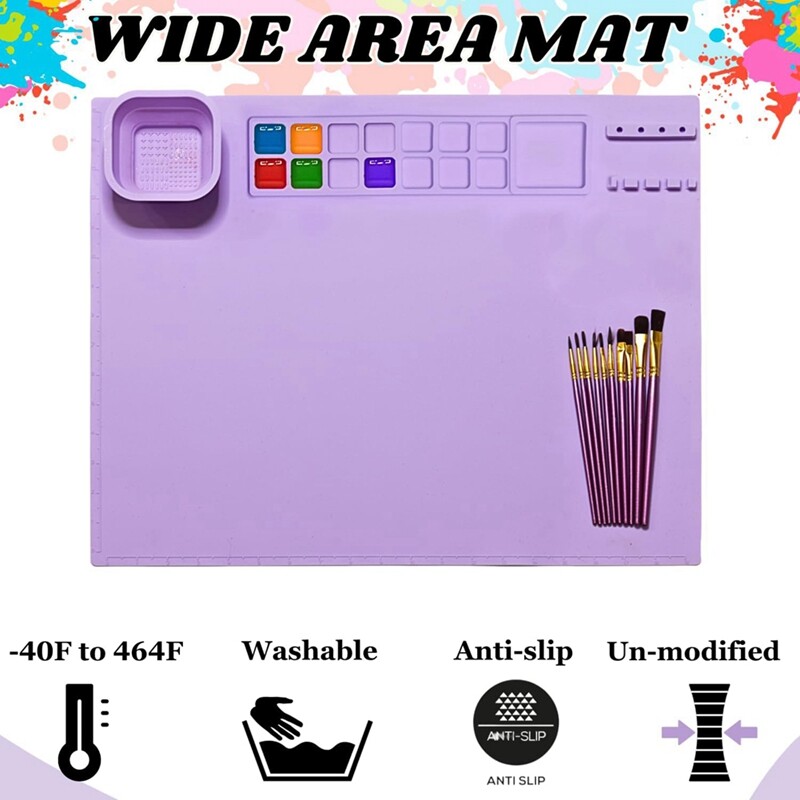 La surface est lisse et facile à nettoyer, les taches sont éliminées en un seul chiffon, ce qui est pratique et hygiénique. Matériau anti-rayures : le tapis de peinture en silicone bloque efficacement la pénétration des pigments, assurant un dessus sans couture et facile à... Elle aide les enfants à réaliser des créations précises et favorise leur dextérité manuelle et leur pensée spatiale. 【Résistant à la chaleur】Ce tapis en silicone est fabriqué en silicone de qualité supérieure avec une plage de température de -40 °C à 230 °C. Tapis Silicone Résistant Chaleur MXTIMWAN Tapis De Peinture En Silicone, Tapis D'Art En Silicone Tapis Silicone 60x40 Cm Antidérapant Il a une bonne adhérence et flexibilité, ne se déforme pas facilement et est durable. C'est un espace de travail polyvalent et idéal pour les projets de pâtisserie, d'art ou de bricolage., Fonction clé. Doux et durable : le tapis en silicone est doux et élastique, avec une prise en main confortable. Idéal pour les activités créatives avec les enfants. Bord surélevé : le bord surélevé sur tout le pourtour empêche efficacement les fuites de peinture, d'argile ou de liquides, garde la surface de travail propre et rend le processus de création plus détendu. Nous ferons de notre mieux pour vous montrer la couleur exacte., 2., Les mesures étant prises à la main, les tailles indiquées peuvent varier légèrement. Plus de soucis pour les dommages causés par les températures extrêmes. Que ce soit pour la peinture, le découpage de papier, le perlage, la couture, la peinture au sable, le moulage en résine, les loisirs créatifs en argile, la fabrication de cartes de vœux ou la pâtisserie, ce tapis de table antidérapant en silicone offre une protection stable et fiable Résistance à haute température : plage de température de fonctionnement -40 à 230 ℃ Liste des pièces : 1 tapis d'artisanat en silicone (autres accessoires non inclus)., Remarques : 1., Il peut y avoir de légères différences entre l'image et la couleur réelle de la marchandise. Idéal pour les projets artistiques et artisanaux. FINEASY Lot de 6 Tapis Adhésifs Antidérapants pour Peinture Diamant