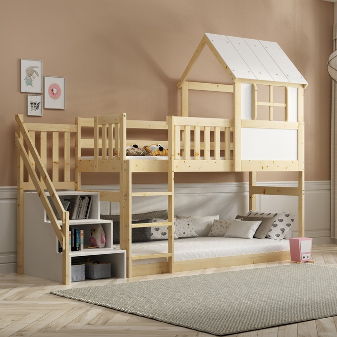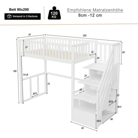 Lit Mezzanine Enfant 90x200 Cm En Bois Avec Escalier De Rangement Placards Gris Meuble escalier double usage : Équipé d'un meuble escalier avec rangement, il offre un accès sécurisé au lit supérieur et permet de ranger soigneusement jouets, livres ou vêtements. Lit 3 Places Superposé Lit Mezzanine Lit Enfant Simple 90x200 Cm Bureau Armoire 3 Tiroirs Espace De Rangement Ouvert Garde-corps Escalier Blanc Lit Avec Tiroirs Et Tableau Noir Lit superposé enfant gain de place : Ce lit superposé enfant de 90 x 200 cm aux tons blancs et naturels est idéal pour optimiser l'espace dans la chambre des enfants tout en conservant un style frais et épuré. Caractéristiques Conception gain de place : le lit mezzanine exploite efficacement l’espace vertical et libère de la surface au sol, idéal pour les petites pièces ou les familles ayant besoin de rangement supplémentaire. Rangement multifonctionnel : équipé de deux armoires de rangement, de tiroirs et d’une barre pour suspendre les vêtements, il permet d’organiser vêtements... Lit mezzanine 90x200cm en bois massif - avec escalier de rangement - Naturel. Vendu par Vie Moderne. - 39.22 %. 764,98 € Au lieu de 764,98 €. 464 ,98 € Vendu... Facile à installer : Des instructions détaillées et des pièces complètes vous aideront à terminer l'assemblage. Tiroirs pratiques sur roulettes : Équipés de trois tiroirs sur roulettes qui coulissent facilement, les enfants peuvent accéder à leurs affaires facilement et en toute autonomie. Le plaisir de l'installation vous permettra d'apprécier encore plus ce lit. Il est équipé de trois tiroirs à roulettes qui coulissent facilement, permettant aux enfants d'accéder à leurs affaires de manière autonome sans compromettre la stabilité. Construction polyvalente et durable : Fabriqué en pin, MDF, PB et contreplaqué, il est résistant aux jeux quotidiens et s'intègre parfaitement à divers décors de chambre d'enfant, des plus ludiques aux plus modernes. Ce meuble multifonction pour chambre d'enfant est idéal pour les parents et les enfants : il allie plaisir, rangement et style !