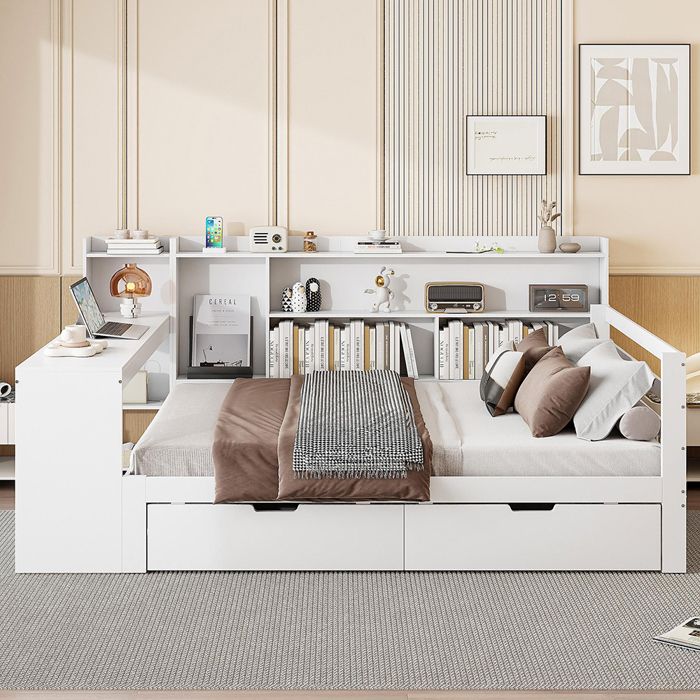 Remarque : toutes les dimensions sont approximatives., Charge maximale : 200 kg., Housse : panneau MDF. Indications : Les mesures étant prises à la main, les tailles indiquées peuvent varier de 2 à 3 cm. Différentes tailles disponibles, personnalisables de manière flexible : disponible dans les tailles 90 x 200 cm et 140 x 200 cm pour répondre aux différents besoins des chambres d'enfants, des petits appartements ou des pièces polyvalentes et créer facilement un espace de couchage confortable. Détails des espaces de rangement : tiroirs, armoires, table de chevet. Lit combine 140x200 cm avec 2 tiroirs bureau étagères Matelas applicable : 140 x 200 cm., Poids net : 100,6 kg. Type de matelas : sans matelas. Description du produit Caractéristiques Disponible en plusieurs tailles Deux tailles, 90x200cm et 140 x 200 cm, sont disponibles pour répondre aux besoins variés des chambres d'enfants, des petits appartements ou des pièces multifonctionnelles, et créer facilement un espace de couchage confortable. Lit multifonction Combinant les fonctions d'un canapé-lit et d'un lit bébé, il peut... Espace de rangement spacieux, rangement facile sans encombrement : équipé d'un tiroir extra large de 58 cm de profondeur, d'une boîte de rangement pratique et d'une table de chevet push-pull, il offre de nombreuses combinaisons d'espace de rangement pour les jouets, les livres, la literie et d'autres objets. Type de sommier à lattes : avec sommier à lattes. ※ Si le client a des questions lors de l'installation, veuillez nous contacter dès que possible. Mobilier Chambre Enfant Blanc Canapé-lit Simple Pour Enfant - 140 X 190 Cm - Avec Avec Tiroirs + étagère Et Armoire Lit Enfant 140x200 Avec Couchage Lit enfant Lit capitonné Lit double 140 x 200 cm avec LED et tête de... Un lit pour de nombreuses utilisations, pratique pour le jour et la nuit – avec les fonctions lit de jour et lit d'enfant, il peut être utilisé comme canapé confortable ou coin lecture pendant la journée et comme lit confortable la nuit.