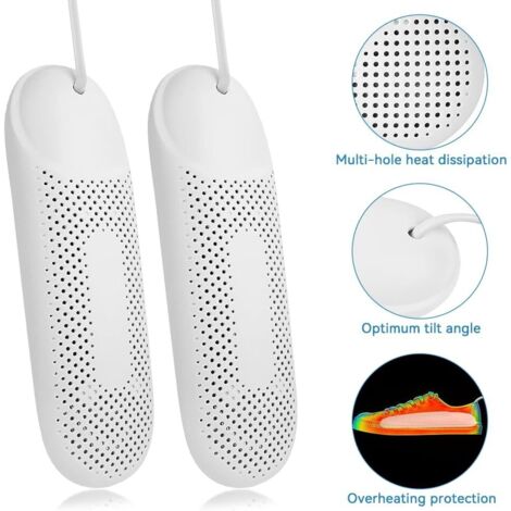 【Matériau de haute qualité】Seche-bottes est fabriqué en matériau ABS + PC de haute qualité, résistant à la pression et aux températures élevées, ignifuge et ignifuge, et n'est pas facile à brûler et à déformer pendant l'utilisation. Le sèche-chaussures convient à différents types de chaussures, comme les bottes, les chaussures de sport, les chaussures plates et les chaussures d'enfant. Il est également idéal pour les gants, les bonnets, les chaussettes, etc. Idéal en voyage ou à la maison, il sèche-bottes vous permett... 【Sèche-bottes avec minuterie à 3 modes】Sèche-chaussures électrique 3 niveaux de chauffage, contrôlables intelligemment. 【Dissipation thermique à 360°】Il y a de nombreux trous d'air étroitement répartis sur le sèche-chaussures électrique du sèche-linge. Sèche Chaussures 3 Modes Seche Chaussure Electrique, Seche Chaussure De Ski, Seche Bottes, Chauffe- Chaussures Et Bottes, Pour Sécher Les Chapeaux, Les Chaussures, Les Gants, Lumière Violette + Charbon Actif Sèche-chaussures Portable La taille du produit sèche-chaussures électrique est de la taille d'une paume, il peut être facilement rangé dans une valise ou un sac à main. KQWVZ sèche-chaussures électrique--- qui peut être utilisé toute l'année. Vous n'avez donc pas à vous soucier des risques potentiels en matière de sécurité. La température à l'intérieur de la chaussure est constante de 50 °C à 60 °C, un timing précis et une température appropriée peuvent empêcher les chaussures de surchauffer. Seche-bottes parfait pour un usage en voyage ou à la maison. Il résiste à la pression et aux températures élevées et n'est pas facile à brûler ou à déformer pendant l'utilisation., 2., Le sèche-chaussures électrique aide à éliminer l'humidité de l'intérieur de vos chaussures mouillées tout en maintenant la température de la semelle, vous permettant de résoudre facilement le problème des chaussures mouillées par temps froid, par temps pluvieux et dans les régions., 3., Seche-bottes est léger et portable, adapté à la maison, au bureau, au camping en plein air et à d'autres occasions, vous permettant de profiter de chaussures sèches à tout moment et en tout lieu. Lorsqu'il est chauffé, un flux d'air chaud circulant est créé à l'intérieur de la chaussure, ce qui assure une répartition uniforme de la chaleur sur 360° et accélère l'évaporation de l'eau. Sèche-bottes électrique QQMORA avec minuterie et thermostat intelligent... Dites adieu au froid et gardez vos pieds au sec toute la journée ! En cette journée d'hiver/pluvieuse, vous n'aurez plus jamais mal à la tête en séchant vos chaussures. Seche Chaussure Pliable Portable, Sécheurs De Chaussures Portables Pliable Extensible avec Blu-Ray/3 Modes Minuteur, Chauffe-Bottes/Sèche-Bottes pour Chaussures De Ski Chaussure