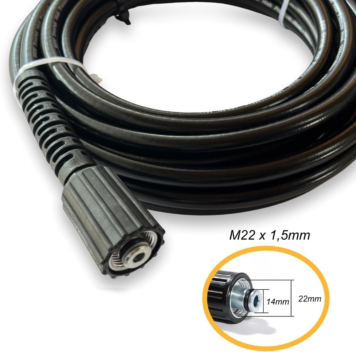 Il suffit de retirer l’agrafe du pistolet, d’extraire l’ancien tuyau, d’insérer le nouveau et de remettre l’agrafe en place. Raccord d'entrée : filetage intérieur M22., Raccord de sortie : raccord rapide de type clip. Tuyau haute pression M22 IG de rechange 160 bar 40° pour Kärcher K2/K3/K4/K5Veuillez comparer exactement les images avec votre ancien tuyau., ! Matériel de montage: Matériau du tuyau : fil d'acier tresséPression de service : 160 bar / 2320 psi. Tuyau Machine à Laver M&M Smartek Tuyau Haute Pression Avec Tuyau De Rechange M22 Tuyau Tressé Acier Résistant Température maximale : 40 °C. Dispositif de raccordement : - M22 x 1,5 filetage intérieur (laiton) pistolet de raccordement 2., 641–959., 0., - Raccord enfichable. ✔ RACCORDS DE PRÉCISION POUR UNE CONNEXION FIABLE ET ÉTANCHE – Le tuyau est équipé d’un filetage femelle M22 x 1,5 en laiton pour la connexion au nettoyeur haute pression, ainsi que d’un raccord rapide Type Clip pour le pistolet. Longueur du raccord : 28 mm | Diamètre de la rondelle : 18 mm | Diamètre du raccord : 10 mm. Rallonge Tuyau Karcher MIGOUFIT Tuyau Pour Nettoyeur Haute Pression Pour Karcher K2 K3 K4 K5 Tuyaux Pour Nettoyeurs Haute Pression Ensuite, faites glisser le nouveau tuyau (raccord latéral) dans l'ouverture devant la poignée du pistolet et poussez la pince à nouveau dans sa position de départ. Vissez l'autre extrémité (filetage intérieur M22 x 1,5) sur la sortie haute pression (filetage extérieur M22 x 1,5) de votre nettoyeur haute pression – c'est prêt. Ces raccords précis garantissent une connexion sécurisée sans perte de pression, assurant ainsi un nettoyage haute pression efficace et puissant. Température maximale d’utilisation : 40°C, permettant l'utilisation d’eau chaude. Raccord universel M22 IG – directement compatible avec de nombreux appareils Kärcher – Équipé d'un raccord fileté femelle M22 standard (filetage intérieur des... M&M Smartek Tuyau haute pression avec tuyau de rechange M22 IG, 160 bar, 40 °, pour Kärcher K2/K3/K4/K5 - (10 mètres) ; Matériau. Laiton ; Contenu du carton... S'il ne se détache plus du pistolet, le remplacement a été réussi ! Grâce à sa conception renforcée, il est également très flexible et résistant aux plis, évitant ainsi les dommages liés à une utilisation intensive. Ses raccords en laiton garantissent une connexion hermétique et sans fuite. ✔ PERFORMANCE HAUTE PRESSION JUSQU'À 400 BAR – Conçu pour des nettoyeurs haute pression fonctionnant à 160 bar en continu (2320 psi) et pouvant supporter une pression d’éclatement de 400 bar (5800 psi). Le raccord rapide (Type Clip) assure un verrouillage parfait, évitant tout risque de déconnexion ou de fuite d’eau pendant l’utilisation. Veuillez comparer attentivement les images avec votre ancien tuyau avant l’achat !