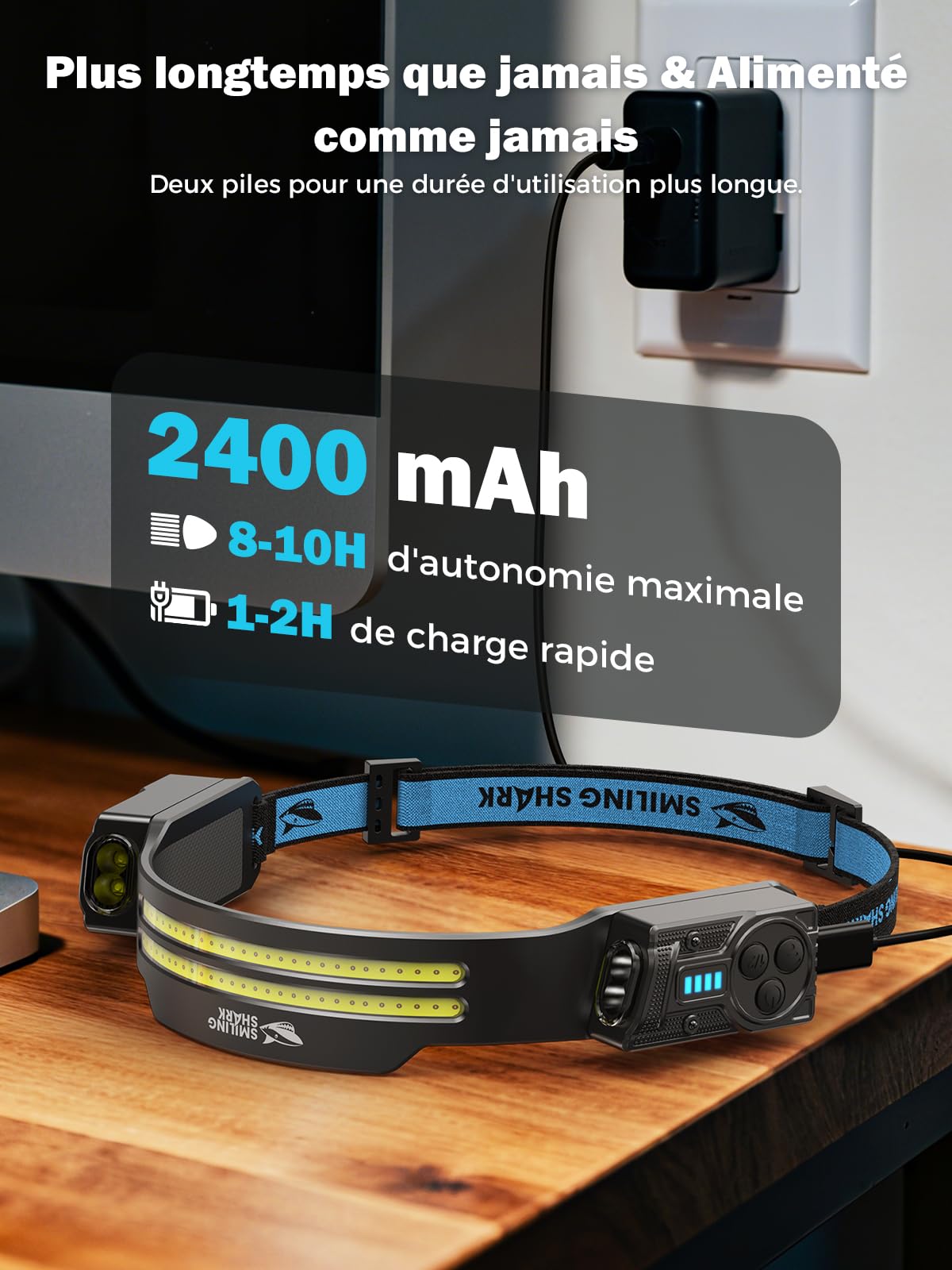 Arkenlite Led Smiling Shark Frontale Rechargeable, 2 Pack LED Lamp Frontale 7*Lumières Blanches Super Frontale Ultra Puissante 5 Modes Lampe frontale - Smiling Shark - Rechargeable - 5 Modes de Lumière Lampe ontale Rechargeable, 2 Pièces 230° LED Ultra Puissante Torche ontale avec 6 Modes d'Éclairage & Détecteur de Mouvement Pour Camping, Pêche, Jogging et Randonnée Changez facilement entre un faisceau puissant ou faible, un éclairage large et le mode stroboscope selon vos besoins. 【𝐃𝐨𝐮𝐛𝐥𝐞 𝐒𝐩𝐨𝐭 𝐑é𝐠𝐥𝐚𝐛𝐥𝐞 𝐩𝐨𝐮𝐫 𝐜𝐥𝐚𝐫𝐭é 𝐞𝐭 𝐝𝐢𝐬𝐭𝐚𝐧𝐜𝐞】Ce système unique combine un puissant faisceau longue portée avec une lumière douce idéale pour les zones proches. La lamp frontal headlight est conçue pour offrir une précision à distance ou un éclairage large, tout cela ajustable en un instant. 【É𝐜𝐥𝐚𝐢𝐫𝐚𝐠𝐞 𝐦𝐮𝐥𝐭𝐢𝐟𝐨𝐧𝐜𝐭𝐢𝐨𝐧𝐧𝐞𝐥】La headlamp led TS-2 est une frontal rechargeable usb conçue pour s'adapter à tous vos besoins. 【𝐂𝐚𝐩𝐭𝐞𝐮𝐫 𝐝𝐞 𝐦𝐨𝐮𝐯𝐞𝐦𝐞𝐧𝐭 𝐢𝐧𝐭𝐞𝐥𝐥𝐢𝐠𝐞𝐧𝐭, 𝐦𝐚𝐢𝐧𝐬 𝐥𝐢𝐛𝐫𝐞𝐬】Allumez ou éteignez la lampe d’un simple geste grâce au capteur intégré. 【𝐁𝐚𝐭𝐭𝐞𝐫𝐢𝐞 𝐫𝐞𝐜𝐡𝐚𝐫𝐠𝐞𝐚𝐛𝐥𝐞 & 𝐚𝐮𝐭𝐨𝐧𝐨𝐦𝐢𝐞 𝐩𝐫𝐨𝐥𝐨𝐧𝐠é𝐞】Sa batterie de 2400mAh se recharge en 1 à 2 heures pour offrir jusqu'à 8 heures d'éclairage continu. La frontal rechargeable usb vous garantit une lumière fiable dans toutes vos conditions. Parfait pour les Activités de Nuit] Que vous fassiez du camping, de la randonnée, de la pêche ou du bricolage, la lampe frontale fournit la quantité de lumière parfaite pour toutes vos activités nocturnes