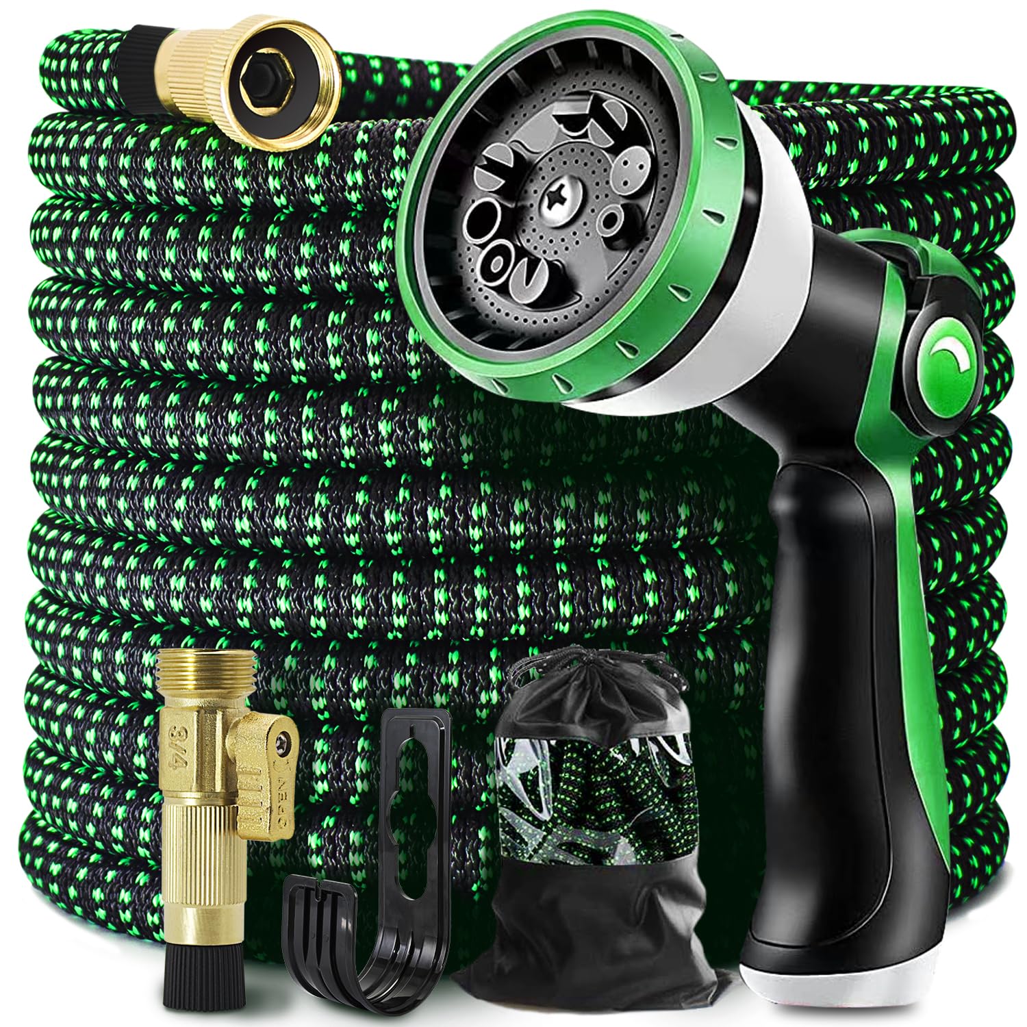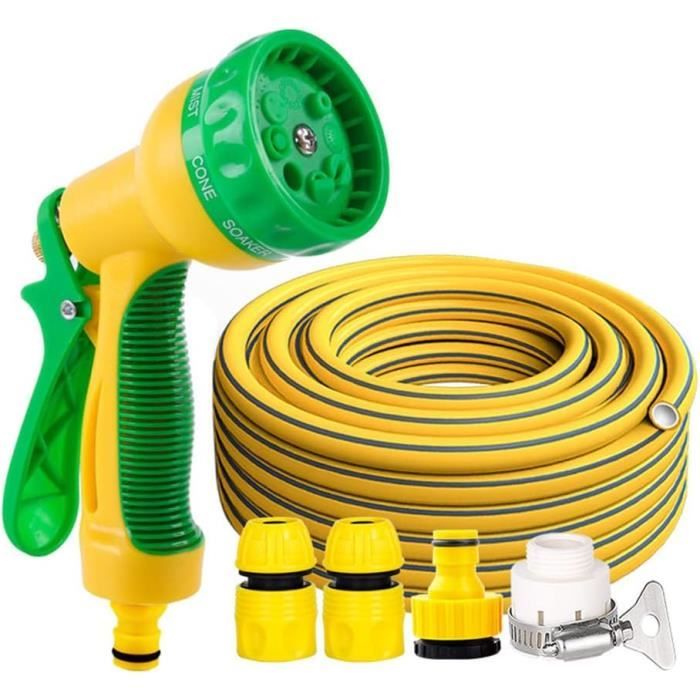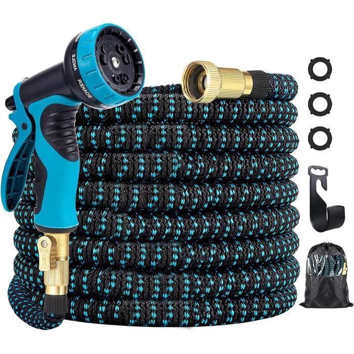 La buse rotative offre 10 modes de pulvérisation polyvalents, parfait pour laver votre maison, voiture, sol ou cour, arroser votre jardin, nettoyer les animaux de compagnie, s'amuser, ou pour le camping et une utilisation commerciale tuyau d'arrosage tuyau d'eau extensible avec buse de pulvérisation Matériau de haute qualité amélioré : le tuyau d'arrosage rétractable flexible KETTOYA utilise un noyau en latex épais à 4 couches et une housse en tissu polyester 3750D tricoté à 13 couches, lui permettant d'avoir une excellente résistance à l'usure et extensibilité. Tuyaux Arrosage Extensible 30 M SnugNiture Tuyau D'arrosage Extensible De 30,5 M Avec Buse De Pulvérisation à 10 Fonctions, Tuyau Extensible 3750D Sans Nœud, étanche Et Léger Avec Connecteur Solide De 1,9 Cm Tuyau D'arrosage Avec Buse Pulvérisation Buse de pulvérisation 10 fonctions améliorée : le tuyau d'arrosage extensible KETTOYA est livré avec une buse de pulvérisation à 10 fonctions contrôlée par le pouce pour un confort ultime. Connecteur de valve 2 en 1 : KETTOYA conserve la commodité d'une valve avec un connecteur rapide. Tuyau d'arrosage extensible 30 m/150 pi, pistolet 10 modes, 4 couches... Notre tuyau d'arrosage pliable adopte une double boucle et une technologie de pression triple en aluminium, donnant au tuyau d'arrosage pliable des caractéristiques super étanches. Lorsque vous éteignez le robinet, le tuyau rétrécit à sa longueur d'origine de 10 m. Tuyau d'arrosage flexible de 30 m avec buse d'irrigation à 7 modes, raccord rapide et design anti-enchevêtrement – Robuste, léger et réglable pour différents besoins d'arrosage en plein air Parfait pour une large gamme d'applications La valve vous permet de contrôler le débit d'eau à tout moment, tandis que le connecteur rapide vous permet de fixer facilement des nettoyeurs haute pression, des arroseurs et d'autres appareils externes. Pression d'eau recommandée : 3 à 12 bars., Charge maximale : 20 bars. KETTOYA Tuyau d'arrosage extensible de 30 m, tuyau d'arrosage avec buse de pulvérisation à 10 modes, connecteur rapide de valve 2 en 1, tuyau d'arrosage flexible et robuste, durable 3750D, noyau en latex à 4 couches, anti-fuite, sans plis Il prolonge considérablement la durée de vie du tuyau