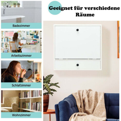Les six compartiments ouverts offrent de la place pour présenter vos petits objets. Construction robuste avec surface imperméable pour une longue durée de vie. Description du produit Description: Notre table murale pour ordinateur portable est la solution parfaite pour votre espace de vie limité. Ressorts pneumatiques de qualité supérieure pour des transitions douces et silencieuses. Plateau Rabattable 56x41cm SoBuy Bureau Gaming Bureau Avec Rangement Table Pliable D Meuble Gain De Place Bureau Les ancrages muraux robustes permettent une grande capacité de charge. 1 manuel d'utilisation (français non garanti). Construction robuste et matériaux durables : fabriqué à partir de planches de haute qualité, ce bureau pour ordinateur portable est assez robuste pour un usage quotidien. En outre, la surface est imperméable et résistante à l'usure, de sorte que vous pouvez facilement la nettoyer et l'entretenir. Komto Bureau Pliable Blanc avec 3 Tiroirs – Table Informatique PC Convient pour le salon, le dortoir, le bureau et d'autres petits espaces. Capacité de charge : 5 kg (plateau), 5 kg (étagère), 5 kg (tiroir) Contenu de la livraison : 1 table murale pliante. En combinaison avec ses nombreuses fonctions, ce meuble peut être utilisé comme bureau dans le bureau à domicile, comme coiffeuse dans la chambre et comme espace de rangement organisé dans le salon. En outre, le plateau extensible peut être fermé lorsqu'il n'est pas utilisé, ce qui permet d'économiser de l'espace et de transformer le bureau en armoire de rangement cachée. La table pliante de bureau est un meuble polyvalent et pratique qui s'adapte à tous les espaces de travail. Que vous travailliez à domicile, dans un petit bureau ou que vous ayez besoin d'une table d'appoint pour vos réunions, la table pliante est la solution idéale Table murale pliante en bois avec compartiments de rangement et tiroir... Matériau : panneau en bois, MDF Dimensions totales (L x l x h) : 60 x 15 x 57 cm., Poids net : 12 kg. Tous les outils nécessaires au montage sont fournis pour terminer l'installation rapidement. Design de montage mural flexible et sûr : ce bureau flottant est fixé au mur en toute sécurité grâce à des crochets d'armoire solides. Bureau compact avec plateau pliable : par rapport aux bureaux traditionnels, ce bureau flottant compact permet d'économiser considérablement de l'espace au sol et transforme la surface murale en un espace de travail efficace dans votre chambre ou votre bureau. À l'intérieur du tiroir se trouvent également des butées qui empêchent les chutes. Avertissement De Sûreté Ne pas surcharger le bureau pour éviter qu'il ne tombe.