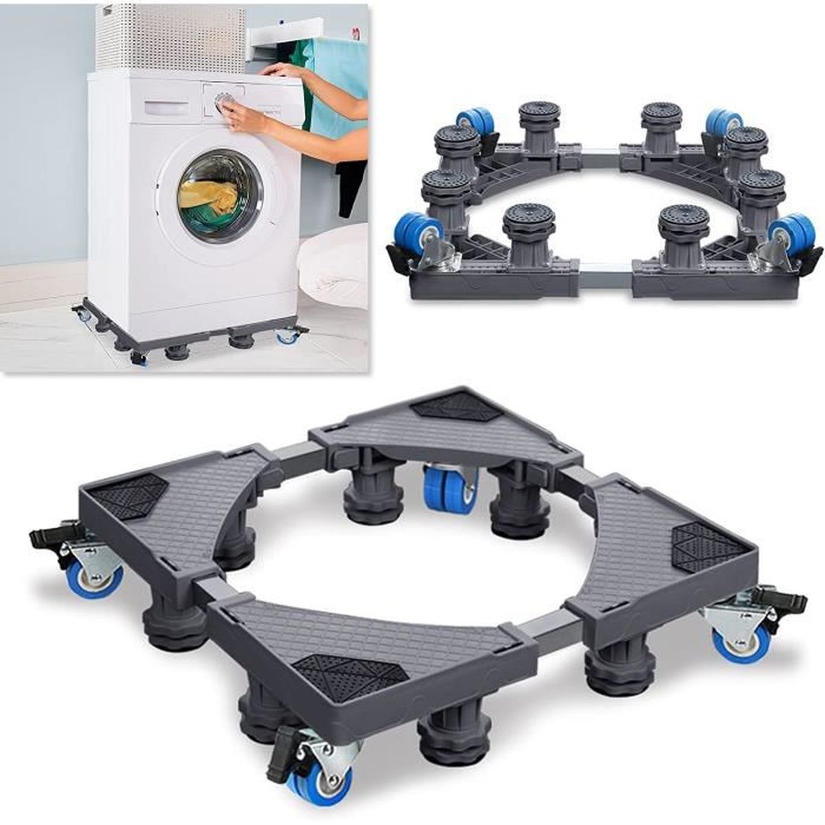 Base De Machine à Laver Réigérateur Chariot Roller Support Roulant Pour Seche Linge Lave Linge Congelateur Reglable 8 Pieds 4 Roues 41 66cm AOPINER Support ultifonction pour achine à laver - Base réglable... Socle Roues Pieds Réglables 42-65cm Support Machine A Laver, Ajustable Socle Lave Linge Avec 4 Roues Et 4 Pieds, Base Machine à Laver Charge 300kg, 49x45x10-70x66x13cm - Au Quotidien Socle Réglable 200kg 【Matériau】Le support pour lave-linge est conçu en acier inoxydable durable pour une stabilité et une fiabilité optimales, réduisant les vibrations et le bruit tout en facilitant le nettoyage. Il peut être étendu pour accueillir sèche-linge et réfrigérateur. SJLERST Base de Machine à Laver Réfrigérateur,Support de réfrigérateur... 【Réglable】Le support pour lave-linge est doté de pieds réglables pour les sols irréguliers et s'adapte à la taille de votre appareil. Il peut supporter jusqu'à 200 kg et peut être installé par une seule personne sans outils spéciaux. 【Sécurité et protection】Le support pour sèche-linge est doté de patins en caoutchouc antidérapants pour protéger les sols et les sèche-linge, réduire le bruit et sa surface imperméable prévient la rouille. Facile à assembler, il s'adapte parfaitement à la plupart des appareils.