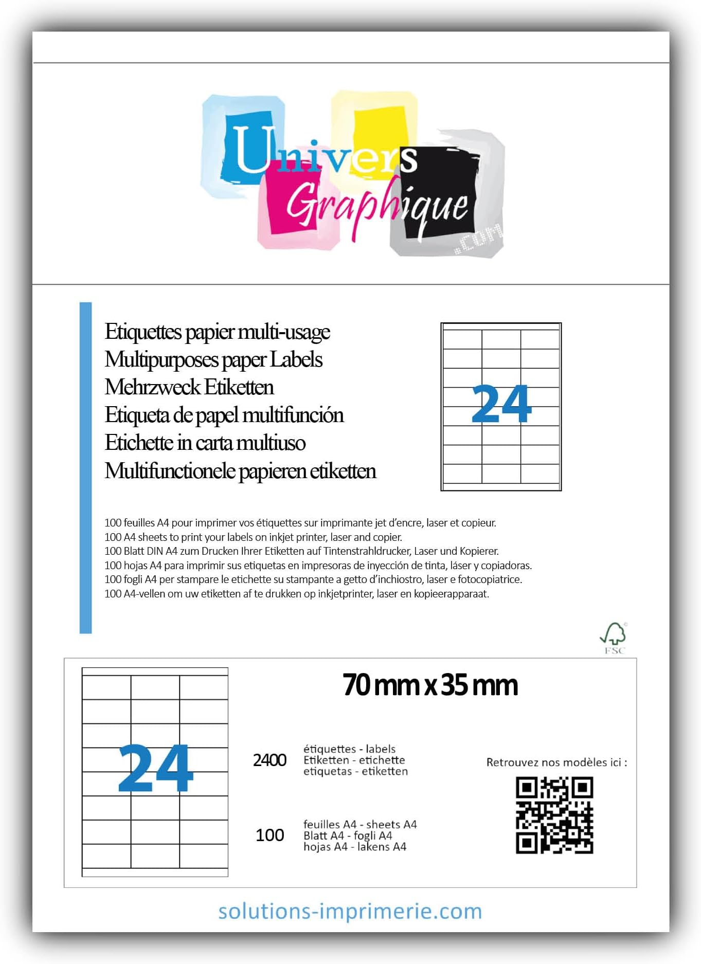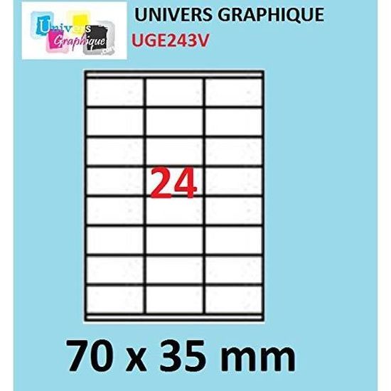 étiquettes Laser 70x36mm 2400 Unités 100 Ex Étiquette Transparente Polyester Mat 210 X 297 Soit 100 Planches Pour IMPRIMANTE LASER Seulement, étiquette Synthétique Plastique Autocollante étiquettes Résistantes Huile Eau 2400 Étiquettes multi-usage recyclées 70 x 37 mm blanc 2400 etiquettes 70 x 35 mm - 100 feuilles A4-24 étiquettes autocollante... Bonne résistance à l'humidité -Adhésif acrylique à forte adhésion - résistant à l'eau, huiles et graisses - répond à la norme BS5609 -Compatible avec tous les programmes populaires - Idéal pour des autocollants, des affiches, Stickers, étiquette pour vitre. - Le film est résistant à la déchirure et adapté pour une utilisation intérieure et extérieure Etiquettes en feuilles A4 POLYESTER transparent mat pour imprimantes laser couleur 2400 ex Étiquette Transparente polyester mat 70 x 36 soit 100 planches Etiquettes en feuilles A4 POLYESTER transparent pour imprimantes laser couleur - Idéal pour l'étiquetage des surfaces et emballages d'aspect mat ou l'étiquette doit rester invisible Impression superbe en laser couleur et monochrome. déal pour l'étiquetage des surfaces et emballages d'aspect mat ou l'étiquette doit rester invisible Impression superbe en laser couleur et monochrome. plolyester 43 microns - support 97 microns - feuille détourée pour passage laser - colle acrylique forte permanente résistante a l'eau et aux huiles Le film est résistant à la déchirure et adapté pour une utilisation intérieure et extérieure Office Star - 2400 Étiquettes multi-usages blanches - 70 x 36 mm - réf...