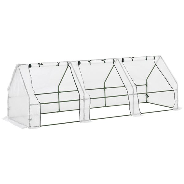 Avec une surface de 10 m², il est parfait pour cultiver vos plantes, fruits et légumes sans vous soucier des conditions météorologiques extérieures. ● Surface utile disponible : 10 m² ● Dimensions de la porte : 115 x 180 cm (l x h). ● Cette serre de potager comprend 4 piquets et 4 cordes de tension pour plus de stabilité et de sécurité., Assemblage requis. Caractéristiques : ● Serre robuste avec design et fabrication de haute qualité, idéale pour une utilisation prolongée. 1 manuel d'utilisation (français non garanti). ● Dimensions de la fenêtre : 38 x 38 cm (largeur x hauteur). Serre A Jardin Outsunny Serre De Jardin Tunnel Surface Sol 5 M² 2,5L X 2l X 2H M Châssis Tubulaire Renforcé 18 Mm 4 Fenêtres Blanc Serre De Jardin 18m2 Outsunny - serre de jardin - Métal - 400x200x205cm - Vert - Jardin ● Dimensions totales : 500 x 200 x 205 cm (L x l x h). Fabriqué en métal et avec revêtement en polyéthylène, il conserve la chaleur et fournit la lumière et l'humidité nécessaires. Robuste et stable : la structure en métal robuste garantit une plus grande stabilité et durabilité. Moustiquaire Aimantée Porte Fenetre, 130 X 205 Cm Moustiquaire... ● Matériau : métal et polyéthylène de 140 g/m². Sa porte avec fermeture à glissière, qui peut également être enroulée, facilite l'accès GRAND SERRE TYPE TUNNEL : si vous ne voulez pas que les saisons limitent la culture de vos plantes et cultures, cette serre de jardin d'une surface de 10 m² protégera vos cultures des intempéries Outsunny Serre de jardin portable de 2,4 x 1,8 , serre chaude d... Bonne ventilation : la serre d'extérieur dispose de 8 fenêtres en maille avec une couverture enroulable, 4 de chaque côté pour améliorer la ventilation croisée lors des journées chaudes. Longueur des bords étendus : 20 cm., Assemblage requis Spécification : ● Couleur : blanc.