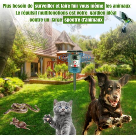 Répulsif Chat Extérieur, Repulsif Ultrason Chat, Solaire Ultrason Répulsif pour Chats Solaire en plein air adopte une conception à haut-parleurs avec capteur infrarouge passif (PIR). Ultra Son Souris Et Rats Puissant Repulsif Chat Exterieur Ultrason Solaire Et Chargement USB, 5 Modes Anti Rongeurs Extérieur Ceci est écologique et pratique, vous n'avez pas à vous soucier du produit nécessitant une prise lorsque vous êtes à l'extérieur. Répulsif Chat Extérieur, Repulsif Ultrason Chat Solaire Ultrason Anti... Répulsif solaire à ultrasons étanche pour éloigner les animaux, les chats, les chiens, les souris, les moustiques et les insectes des zones extérieures... Répulsif anti chat puissant ne contiennent ni produits chimiques ni pesticides, sans danger pour les humains et les animaux de compagnie. Le capteur infrarouge a un angle gauche-droite de 120 ° et un angle haut-bas de 55 °. Ce répulsif à souris est particulièrement adapté pour le jardin, la cour, la pelouse, les pépinières et les vergers. Le répulsif taupe récupère l'énergie du soleil pendant la journée, il est automatiquement chargé par le panneau solaire pour continuer à fonctionner la nuit. Répulsif à ultrasons pour chats spécification d'étanchéité IP44 lui permet de résister à la pluie normale de toutes les directions, adaptée à une utilisation en extérieur à long terme. Repulsif Chat Exterieur Ultrason est alimenté par des cellules solaires, pas besoin de piles supplémentaires.