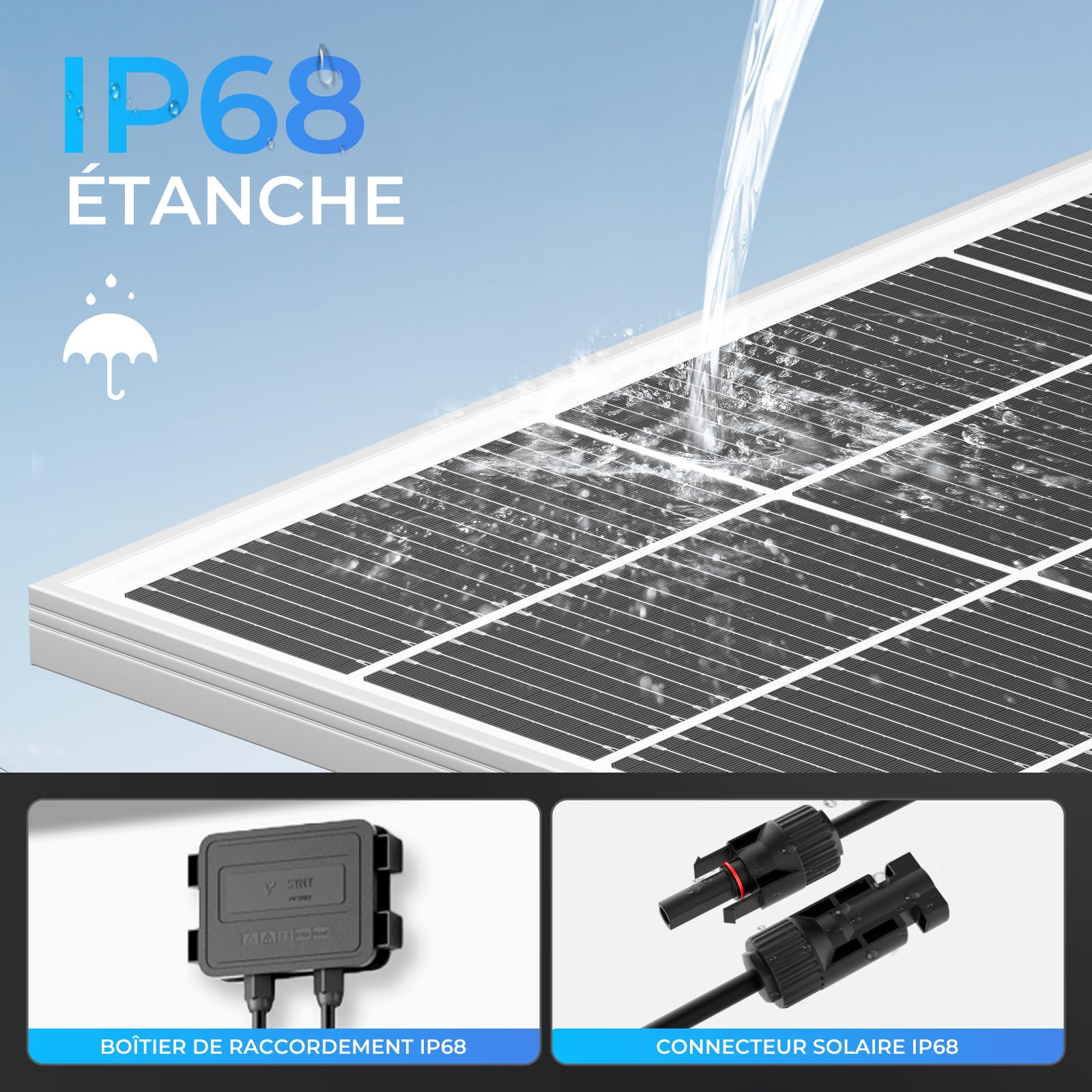 Panneau Solaire 400w 12v Panneau Solaire Monocristallin De Module De Cellule Solaire Durable D Panneau Solaire 440W Technologie de pointe : ce panneau solaire monocristallin est composé de cellules de silicium de grande pureté, revêtues d'un matériau d'encapsulation avancé avec laminage de tôle multicouches pour améliorer les performances cellulaires et garantir une longue durée de vie EJ.life Module de cellule solaire 25W 18V Panneau solaire Installation simple et confortable: trous préforés à l'arrière du module solaire monocristallin 12V permet un montage rapide. Kit de panneau solaire 200W 2 set 12 V module solaire monocristallin... Les modules photovoltaïques peuvent être connectés avec quelques poignées, ce qui permet une mise en service rapide. Design durable : les modules solaires fonctionnent de manière fiable dans une plage de température de -40 °C à 85 °C dans différents environnements et offrent également des conditions météorologiques hostiles telles que la pluie et vent fort une performance stable pour couvrir les besoins en électricité toute l'année. Convient pour différents scénarios: Après l'installation via adaptateur, Le panneau solaire peut charger différents appareils électriques et est donc adapté à de nombreuses applications à l'intérieur et à l'extérieur, par exemple sur les toits, les balcons, dans Jardins, Caravans und auf Campingplätzen. Efficacité de conversion 24,3 %: le panneau solaire de 400 W est fabriqué en silicium de haute qualité mais précieux en utilisant la technologie la plus moderne.