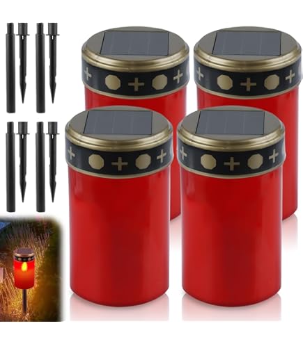 La bougie funéraire est équipée de piquets, même en cas de vent, la lampe funéraire reste fermement ancrée dans le sol. Lumière Tombale étanche IP55 éclairage Sépulture Solaire PEARL Lanterne Funéraire Solaire LED - Bougie XXL 21 Cm - Lumière Continue Vacillante - Étanche IP44 - Blanc Lanterne Funéraire Solaire Rouge Bougies Cimetière Sans Flamme Lot de 4 bougies funéraires LED avec piles NiMH à énergie solaire. Que ce soit par temps froid glacial, chaleur brûlante, vent ou soleil, les bougies funéraires LED font bien leur service Largement utilisé : dimensions des lampes funéraires solaires : 12,5 x 6,5 cm chacune, poids : 78 g chacune. Après une charge complète, la batterie peut éclairer jusqu'à 12 heures (en fonction des conditions d'exposition au soleil). Rosrrtlm Lot de 4 bougies funéraires blanches pour cimetière Cette lanterne funéraire LED solaire produit une lumière vacillante réaliste. Étant donné que les bougies funéraires LED sont sans flamme, sans fumée ni cire, elles sont très sûres à utiliser, il n'est pas nécessaire de remplacer les bougies, ce qui est également très économique et respectueux de l'environnement. Les bougies funéraires sont étanches et résistantes à la chaleur et au froid et offrent ainsi une excellente protection dans des conditions météorologiques défavorables Lanterne funéraire solaire LED La recharge de la bougie funéraire ne prend que 8 à 10 heures en plein soleil et après une charge complète, la batterie peut éclairer jusqu'à 12 heures (en fonction des conditions d'exposition au soleil). Facile à utiliser : la bougie funéraire LED s'allume et s'éteint automatiquement, avant utilisation, il suffit d'ouvrir le couvercle et d'allumer l'interrupteur. Pendant la journée, elle absorbe l'énergie lumineuse et la lanterne funéraire s'allume automatiquement lorsqu'il fait sombre 2 lampes solaires LED, bougies d'extérieur étanches avec piquet de mise... 2 lampes funéraires LED rouges avec effets de scintillement réalistes... Lanterne funéraire LED pour l'extérieur. Étanchéité idéale Nos lampes funéraires à LED rouges ont un indice de protection IP55 et assurent ainsi un éclairage funéraire stable même en cas de vent et de pluie. Les bougies funéraires LED sont parfaites pour exprimer l'amour et les soins en différentes occasions Matériau du produit : ABS Niveau de protection : IP55 Batterie rechargeable : 1,2 V AAA NI-MH600MA.