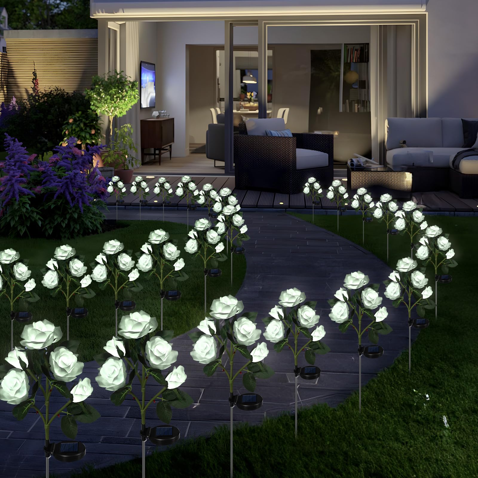 éclairage Solaire Extérieur IP65 2 Lampes Solaires D'extérieur, Lampes Solaires LED Avec Détecteur De Lampes Extérieures IP65 étanches Lampes Solaires Extérieures Jardin 8Pcs Lumiere Solaire Exterieur 8Leds Lampes Solaires Extérieures Lampe Solaire Extérieure 5 Têtes Ip65... Ce lot comprend 2 ensembles de lampes solaires fleuries, transformant votre jardin en un monde féerique. Elles brillent de manière enchanteresse la nuit, créant une ambiance chaleureuse pour votre jardin, terrasse, chemin ou cour. Alimentation Solaire : Nos lampes solaires de jardin sont équipées de panneaux solaires plus larges, convertissant la lumière du soleil en énergie plus rapidement et efficacement. Lampes Solaires pour Jardin Extérieur : Les pétales sont conçus avec élégance, ces lampes solaires en forme de fleur éclosent dans votre jardin le jour et ne fanent jamais. La batterie intégrée de 600 mAh offre 10 à 12 heures d’éclairage (6 à 8 heures sous un ensoleillement complet) avec une charge complète, sans câbles, prises ou factures d’électricité coûteuses. Idéales pour décorer jardins, terrasses, cimetières ou balcons. Un cadeau parfait pour vos proches, votre famille ou vos amis. Lampes solaires d'extérieur – 108 lampes solaires d'extérieur à LED...