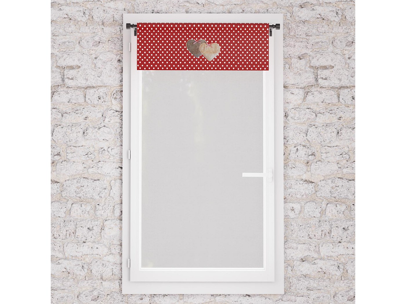 Voile à oeillets pur coton 135x250 cm LOVE rouge, par Soleil d'Ocre | Leroy Merlin Ce brise bise LOVE sera parfait pour donner à votre intérieur une atmosphère romantique et chaleureuse Brise-bise Coton Coeur Rouge Soleil D'ocre, Brise Bise Pur Coton 60x120 Cm Love Rouge Rideau Brise-bise Cœur Rouge Description du produit Ce brise bise LOVE sera parfait pour donner à votre intérieur une atmosphère romantique et chaleureuse., Finition: Passe tringle. Couleur: Rouge et blanc., Composition: 100% coton., Dimensions: 60x120 cm. Brise bise romantique en pointe rayé écru et gris décor coeur brodé avec pompon 45x60cm 100... Patchs en forme de coeur comme éléments décoratifs. Entretien: Lavage à froid en machine. Composants inclus : Bise Breeze , Matériau : Coton , Couleur : rouge. Avertissement De Sûreté Gardez toujours la canne hors de portée des enfants et des animaux domestiques.