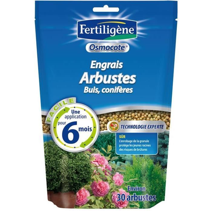 Engrais Longue durée Osmocote Max Arbustes, Buis, Conifères Pratique, une application pour 6 mois suffit ! Fertiligene 8961 6 Mois Engrais Soluble Revitalisant Coniferes 800 G De BHS - Produit Pou Fertiligène 8961 Periode d'utilisation : de Mars à Juin La technologie Osmocote qu'est ce que c'est ? Osmocote est un engrais pret à l'emploi présenté sous forme de granules enrobées d'une résine protectrice. Le Engrais Osmocote Buis Conifère Fertiligène 700g est une solution idéale pour assurer une croissance optimale et une santé robuste de vos buis et conifères Engrais Osmocote pour Hortensias & Plantes de Terre de Bruyère 700G... 3- Plus la température est élevée, plus la diffusion d'engrais augmente. Comment ça marche ? 1- La résine évite le contact direct de l'engrais avec les racines, qui sont ainsi protégées contre les risques de brulures. la croissance de vos plantes est ainsi optimale. Evite tout risque de brûlure grâce à la libération progressive de l'Osmocote. 2- La diffusion se met en route lorsque l'engrais osmocote est en contact avec l'humidité du sol . Convient aussi bien aux arbres et arbustes à fleurs qu'aux espèces décoratives.