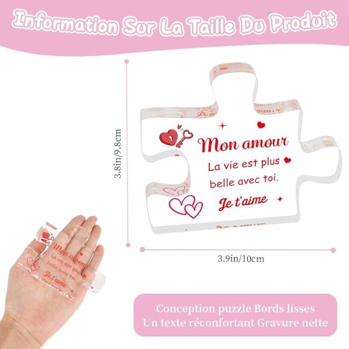 Remarque : le côté du bougeoir avec le texte et le dessin est le côté avant. Cadeau pour les amoureux : ce bougeoir bien conçu est un cadeau sincère pour votre moitié. La structure naturelle du bois ajoute une touche rustique et naturelle aux bougeoirs Accessoires inclus : 2 bougies, prêt à utiliser. Cadeaux couple : des idées originales Il est livré avec deux bougies qui ont toutes deux un diamètre de 3,5 cm/1,38 pouces Livré avec 2 bougies (Ø 3,5 cm/1,38 po). Exprimez votre amour à votre amie et faites-la heureuse. Chandelier - Coeur, Cadeau d'aitié pour Les Fees, Chandelier en Bois Ce cadeau est parfait pour les... Le creux au milieu relie habilement les deux bougeoirs pour former un cœur complet Face et dimensions : Côté texte/dessin en avant, 12 cm (haut) et 10 cm (bas). Haute qualité : le bougeoir est fabriqué en bois de haute qualité, avec une structure solide qui ne s'abîme pas facilement et un toucher délicat et chaleureux. Cadeau St Valentin Cadeau Saint Valentin Couple Cadeau Acrylique Puzzle Cadeau Pour Son Amoureux Cadeau Copine Cadeau Homme Amour 1 G OBJET DECORATIF - Maison Cadeau Saint-Valentin Anniversaire Amoureux dée cadeau copne : Découvrez 10 dées Cadeau | cadeau pour sa copne... Conception spéciale :les deux bougeoirs de hauteurs différentes offrent non seulement un meilleur effet visuel,mais répondent également aux besoins de différents scénarios.