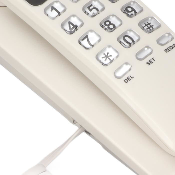 Affichage LCD Mémoire 38 Numéros Sonew Téléphone Filaire Téléphone Fixe Filaire Multifonction, Affichage Telephone Fixe Mural Avec Répondeur Téléphone sans identification de l'htel Mini téléphone mural KXT-433 FAN-téléphone fixe filaire Téléphone mural multifonction avec gros... Contenu : 1 téléphone. Merci de votre compréhension. Double système d'identification de l'appelant - DTMF / FSK. Alimentation : câble téléphonique., Poids : environ 285 g. Affichage LCD mois, date, heure, minute – pour vous faire savoir en temps réel lorsque vous composez / répondez au téléphone. 38 ensembles de mémoire entrants : ce téléphone peut mémoriser les numéros de téléphone utilisés fréquemment en cas d'urgence. Téléphone multifonction : mémoire entrante, contrôle mémoire, fonction d'annulation. Mini Téléphone Fixe Mural T555 Identification De Appelant De Hôtel / Maison Avec Écran Lcd Rétro-Éclairage (Blanc). Téléphone filaire. Remise 5% pour les adhérents, commandez vos produits en ligne et retirez-les en magasin