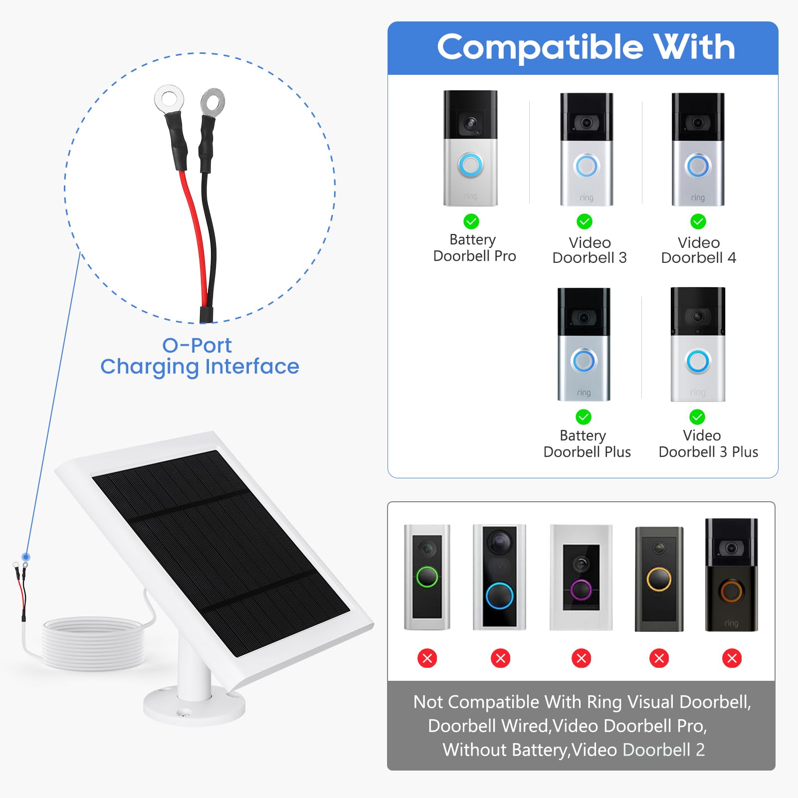 Spécification : Origine : Chine continentale Certification : CE Type : Panneau solaire Nombre de panneaux : 20 Matériau : Silicium monocristallin Efficacité du module : 21,8 % Matériau : Silicium monocristallin Processus : stratification PET Couleur : blanc, (facultatif) Puissance : 4 W Courant de fonctionnement : 0-700MA Courant de court-circuit : 750 MA Tension de fonctionnement : 5 V (chargez la batterie 3 V-5 V) Tension de court-circuit : 6,2 V Interface de chargement : connecteur à fourche de 3,2 mm Conditions de travail : 32°F-122°C (0°C à 50°C) Longueur du câble de charge : 3 M Dimensions : 170*115*10MM/6,69x4,53x0,39 pouces Poids : environ 150 G Modèles applicables : (Conseil : il ne convient pas aux sonnettes sans piles rechargeables. Charge efficace : le chargeur solaire peut atteindre un courant supérieur à 5 V 1 A sous une lumière solaire suffisante. En hiver, l’efficacité de charge des panneaux solaires peut être réduite en raison d’un ensoleillement insuffisant. Nettoyer régulièrement le panneau solaire peut prolonger la durée de vie du panneau solaire de la sonnette., c. Le circuit intégré intelligent intégré offre une protection contre la surcharge, la surchauffe, la surtension et les courts-circuits, assurant une protection complète pendant la Avec une efficacité de conversion d'énergie allant jusqu'à 20 %, il est recommandé d'avoir au moins 3 à 4 heures de soleil direct sans obstruction pour charger rapidement la batterie de votre sonnette. Alimentation Solaire Ring Doorbell Chargeur De Panneau Solaire Pour Sonnette Vidéo Ring Video Doorbell Panneau Solaire Avec Batterie Chargeur solaire 20 W pour sonnette vidéo Ring, support Utilisant du silicium monocristallin à haute efficacité, il comprend un câble de chargement de port de connecteur en forme de U, garantissant que la batterie de votre sonnette reste chargée en convertissant la lumière du soleil en énergie. ) Compatible avec la Ring Video Doorbell 2e génération version 2020 Compatible avec la Ring Video Doorbell 3/3 Plus Compatible avec la Ring Video Doorbell 4 Compatible avec Ring Battery Doorbell Plus (sonnette vidéo) Conseils chaleureux : un. Fonctionnant entre -4°F et 122°F, il comprend un connecteur en forme de fourche pour une fixation facile aux ports de la batterie de votre sonnette vidéo., (Assurez-vo Connectez-le facilement à votre sonnette compatible à l'aide du câblage et de la plaque d'adaptation solaire inclus. La conception résistante aux intempéries et le support de fixation vous permettent de positionner votre panneau solaire pratiquement n'importe où, afin de recevoir la meilleure lumière directe du soleil Compatibilité sur mesure : notre panneau solaire est conçu pour être parfaitement compatible avec Ring Video Doorbell 4/3/3 Plus/2 et compatible avec Ring Battery Doorbell Plus (sonnette vidéo). Sa conception durable et son entretien facile en font une solution pratique pour garder la batterie de votre sonnette chargée sans la retirer constamment. Percez un trou, montez le support rotatif à 360°, alignez le panneau vers la lumière directe du soleil et fixez le câble de charge de 9,8 pieds (3 m) avec le connecteur en forme de U à la batterie de votre sonnette. Description de Panneau solaire pour sonnette Ring, chargeur 5 W, sonnette vidéo 3/3 Plus, vidéo [Compatible avec] Compatible avec Ring Video Doorbell 3/3 /4, Battery Video Doorbell Plus. [Alimentation 5 W Panneau solaire] Chargez votre caméra extérieure en continu, pas besoin de charger la batterie fréquemment. [Support mural 360] Le support rotatif flexible à 360 permet à votre panneau... Météo-Durabilité : ce panneau de charge solaire est conçu pour durer, avec une construction robuste qui garantit des performances fiables dans diverses conditions météorologiques. Profitez d'une alimentation continue quelle que soit la météo, améliorant ainsi la longévité et l'efficacité de votre système de sonnette. Vous pouvez utiliser l'électricité domestique pour recharger votre sonnette en cas de besoin., d.