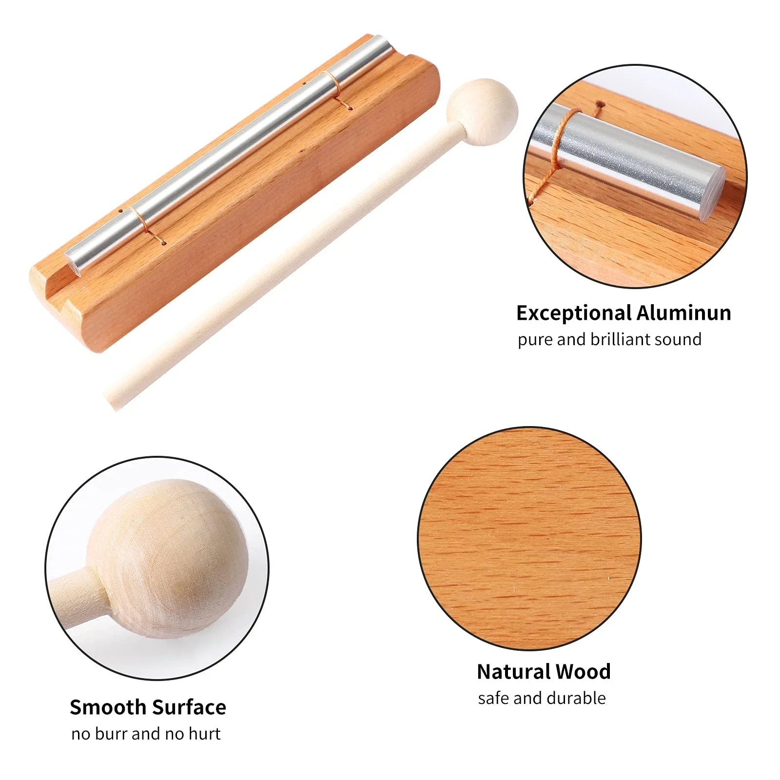 surface lisse et sans bavures du instrument à percussion 3 tonalités garantit sécurité des enfants. Carillons de table - MINIFINKER - Jouet Musical - Bois Argent... 🎵🎶 【Son doux et mélodieux】Carillon Éolien À Percussion Solo Meditation produit un son doux et enchanteur. 🎼🎉 Favorise talent musical et développement holistique de l'enfant, convient à l'éducation musicaprécoce à partir de 3 ans. Jouet Musical éducation Enfants 3 Ans Energy Chime Barre Sonore 3 Sons Avec Maillet En Bois Energy Percussion Instrument D'éducation Musicale Pour Enfants Cadeau Prière Yoga Utilisation Instrument Percussion 3 Tubes Avec Maillet 🎵🎶【Matériaux de haute qualité】Carillon Énergétique est fabriquée en aluminium durabet en bois naturel, respectueuse de l'environnement, sans vernis, non toxique et inodore, garantissant ainsi santé et sécurité. Description du produit: 🎼🎉 Aluminium robuste: Construction en alliage haute résistance garantit durabilité et résistance à rupture. tiges en aluminium sont solidement fixées au socà l'aide d'un système de cordes, ce qui garantit une construction robuste et une qualité sonore exceptionnelle. 🎵🎶【Éducation musicaprécoce】Carillon À Main En Bois Avec Maillet raffiné allie à perfection musique et éducation et constitue un excellent moyen d'éveiller talents musicaux des enfants. En jouant, coordination œil-main est efficacement stimulée, l'intelligence musicaest développée et un sens aigu du rythme est acquis. 🎼🎉 Frappez doucement tiges avec maillet en bois pour produire un son doux et mélodieux. 🎵🎶【Ensembde percussions en bois】Fabriqué en aluminium poli couleur argent et doté d'un socen bois massif, il est livré avec un maillet en bois. Carillon musical à vent ou carillon éolien, mobile à vent et gong musical Bois massif pur: Base en bois naturel, non verni pour préserver grain, respectueux de l'environnement et non toxique. Jouer de cet instrument produit des échos apaisants et résonnants qui détendent corps et l'esprit et restaurent vitalité. Cocosity Carillon de méditation Méditation Chime Aluminium Et Bois De Hêtre Chime Energy Cloche Avec Maillet FR instruments sanza - Instruments de musique