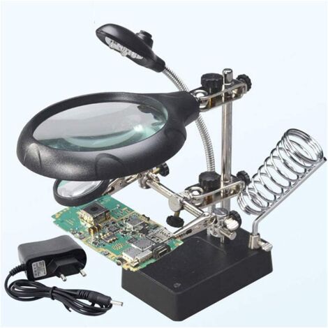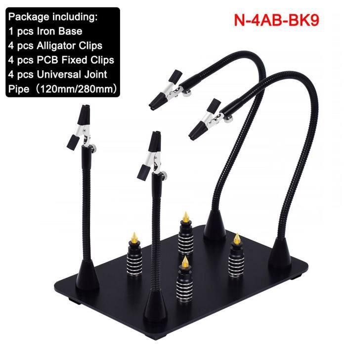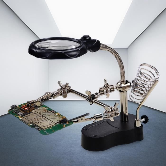 Satisfaction client : notre principe de service est de vous satisfaire des mains à souder. Station De Soudage Troisième Main OBDResource Avec Loupe 3eme Main Soudure Facile à souder : les mains d'aide à la soudure sont livrées avec une loupe en métal 6x pour vous aider à agrandir les composants électroniques, ce troisième outil à main améliore votre efficacité de travail. Le troisième outil à main est également livré avec un plateau en métal pour vos pièces. Positionnement facile Le clip est fabriqué en acier inoxydable de haute qualité, et il peut être tourné à 360 degrés., Pas facile à endommager. Chaque pince crocodile est équipée d'un manchon en caoutchouc isolant pour éviter de rayer le circuit PCB. Loupe optique,Loupe de soudage, fer à souder, troisième main, support... L'outil de soudage est également livré avec un plateau en métal pour vos pièces. Plus lourd que la base normale : la base de soudure est fabriquée en acier métallique robuste avec un châssis qui pèse environ 0,6 kg, assurant que votre station de soudure ne se renverse pas. Nous vous avons également apporté deux clips de rechange supplémentaires. TroisièMe Main De Soudage, Outil De Station De SoudageHelping Hands Outil De Support De Pcb De Soudage Mains Assistance De Soudage Flexibles Avec 96300984 Les pieds en caoutchouc de la troisième aide les mains à protéger le dessus de la table de l'usure. Quatre bras col de cygne de la troisième main vous permettent de libérer complètement vos mains pour un meilleur travail de réparation.