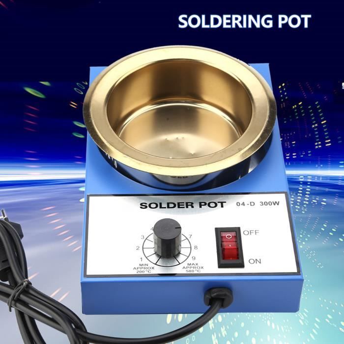 Pot à étain Température Réglable Poste A Souder,Mini Pot à Souder 220V,sans Plomb,revêtement En Titane,en Acier Inoxydable- 150W Outil Soudure Température Réglable Felder ISO-Core Clear Sn100Ni Étain à souder sans plomb bobine Sn99... Poste a souder,four à souder sans plomb,pot d'une capacité ,poêle à L'utilisation d'un noyau chauffant en fil d'aluminium chromé et d'un fil d'isolation en tube de céramique, chauffant plus rapidement et plus . Boules de soudure Boule à Souder Sans Plomb Sphère d'tain 25W pour PCB... Plaque de dépôt des déchets de ferblanterie en acier inoxydable, for faciliter la récupération des déchets de ferblanterie. Vitesse de de l'étain : environ 10 minutesQuantité d'étain dissous: 0,3kgTaille: 150x90x60(mm)Chaudière: 5SS-551-POTNoyau chauffant: 5SS-551-HModèle: SS-552HPuissance nominale : 200WPla de température : 100°C~550°CTaille du four à étain: 50x35H(mm)Matériau du four à étain : matériau en acier inoxydable avec traitement de placaVitesse de de l'étain : environ 10 minutesQuantité d'étain dissous: 0,5kgTaille: 150x90x60(mm)Chaudière: 5SS-552-POTNoyau chauffant : 5SS 552-HModèle : SS-553HPuissance nominale : 250 WPla de température: 250-550Taille du four à étain: 80x40H (mm)Matériau du four à étain: matériau en acier inoxydableVitesse de : environ 20 minutesQuantité de : 1,6 kgfour de , fers à souder électriques, équipement de souda, outils Cartes de contrôle de la température du four et composants électroniques, température réglable, performances stables. Caractéristiques:Convient for l'étain, le plastique, la graisse et d'autres températures ambiantes/basse température, facile à dissoudre grâce à l'utilisation de matériaux dissous.