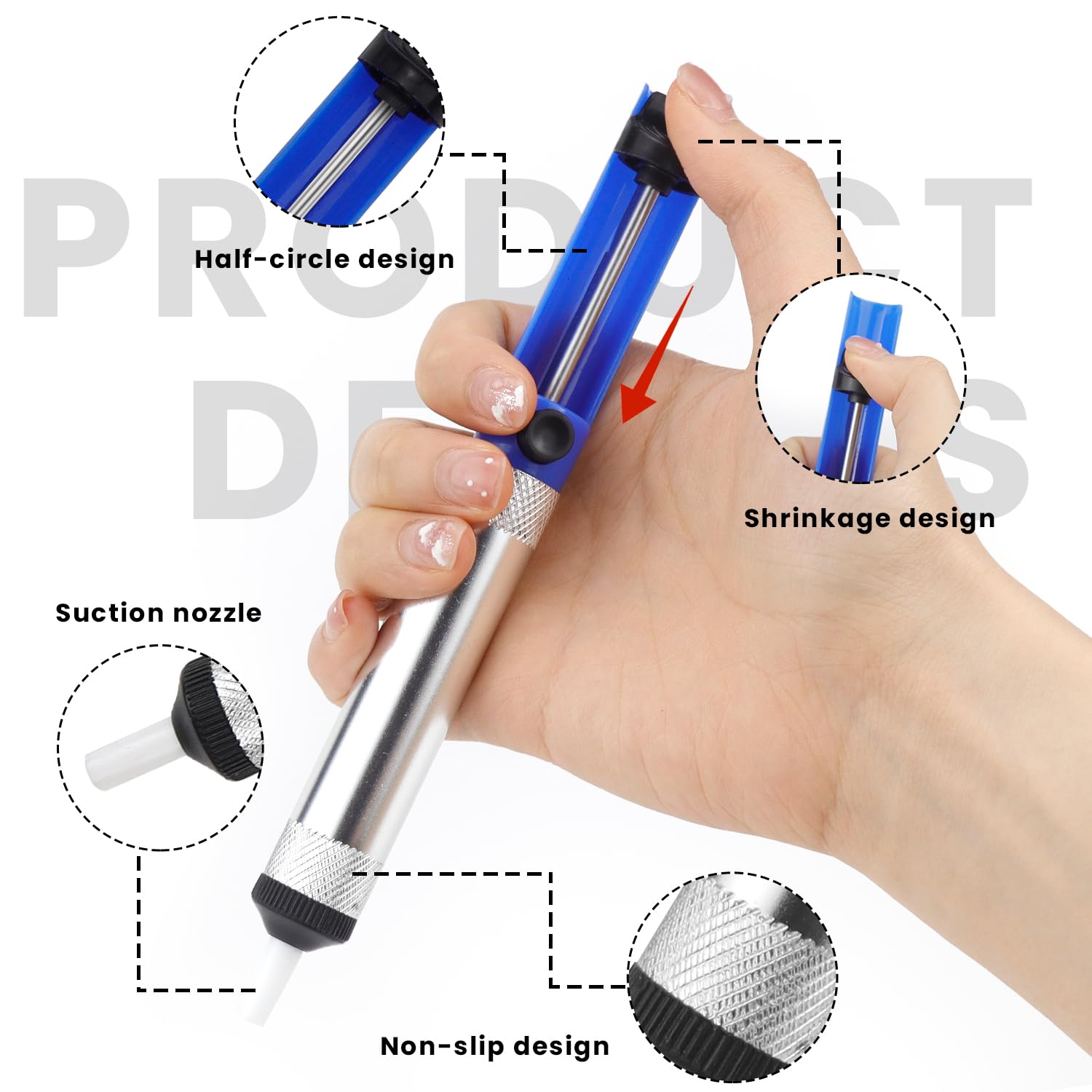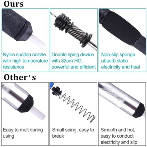 Pompe à dessouder 200mm série 839 Facom | 839A.1 Ligne d'aspiration en cuivre violet avec forte adsorption, double tresse, anti-oxydation et résistance à la corrosion. Etain A Souder Electronique LAN Ventouse À Souder Pompe À Dessouder À Souder Électrique À Souder Fer A Dessouder Pince coupante électronique à bord tranchant, facile à casser le fil, poignée ergonomique, prise en main confortable, antidérapante et durable, facile à utiliser d'une seule main. Fer-poste a souder,Pompe à dessouder en métal en aluminium,odord... Pompe à dessouder en aluminium et métal, pistolet à étain d'aspiration, stylo à ventouse, retrait du fer à souder sous vide, outils de soudage manuels Poignée... Fil absorbant de l'étain: Seiko fabrique une forte adsorption, oxydation et résistance à la corrosion; Conductivité thermique forte, absorbant de l'étain propre, adaptée à divers circuits imprimés électroniques de PCB. Forte conductivité thermique, aspiration propre de l'étain. Contenu de l'emballage: vous recevrez 2 x pompes de désespoir, 1 x mini-filres, 1 x fil d'aspiration en étain pour répondre à vos besoins de nettoyage de soudure. La sensation de confort de la main est très répandue dans les appareils électroniques et électriques et dans d'autres domaines de la maintenance. Peut être utilisé pour couper des fils, des câbles, des diagonales, tous les types de fils métalliques souples. Description : La ventouse à étain est fabriquée en alliage d'aluminium de haute qualité, anti-brûlure et résistante aux températures élevées.
